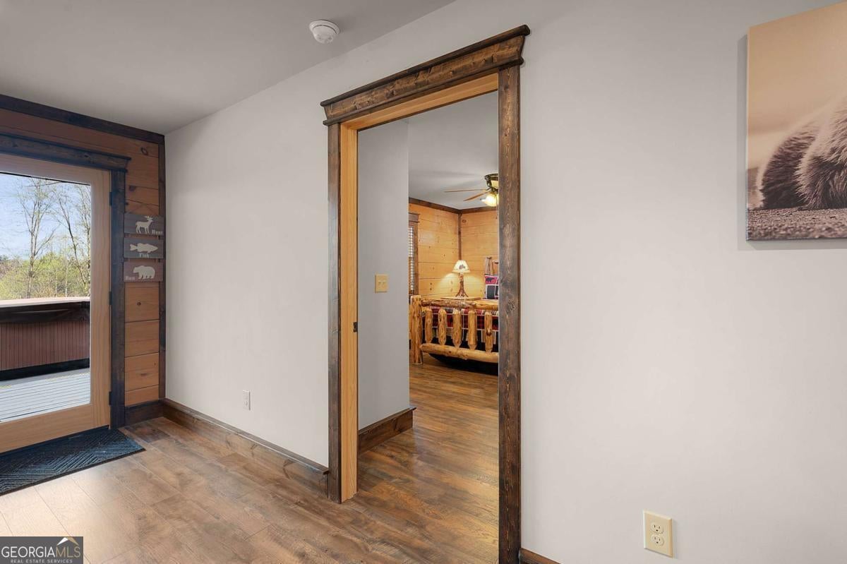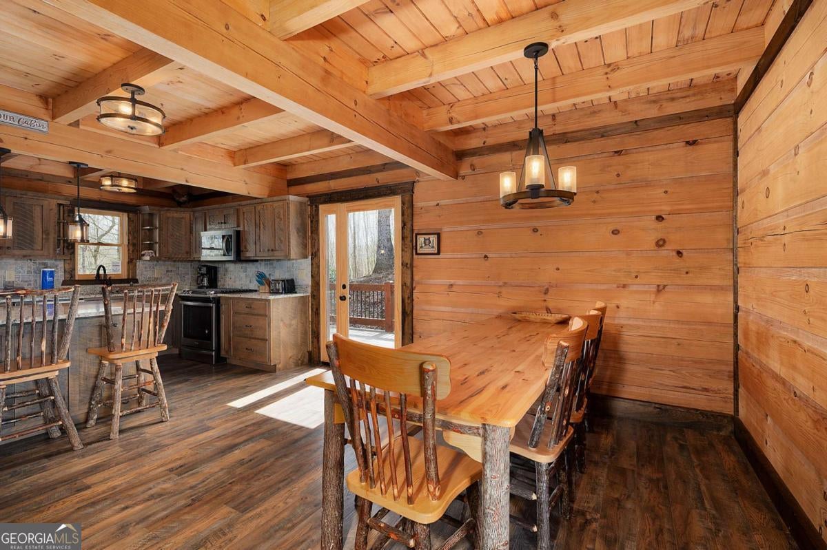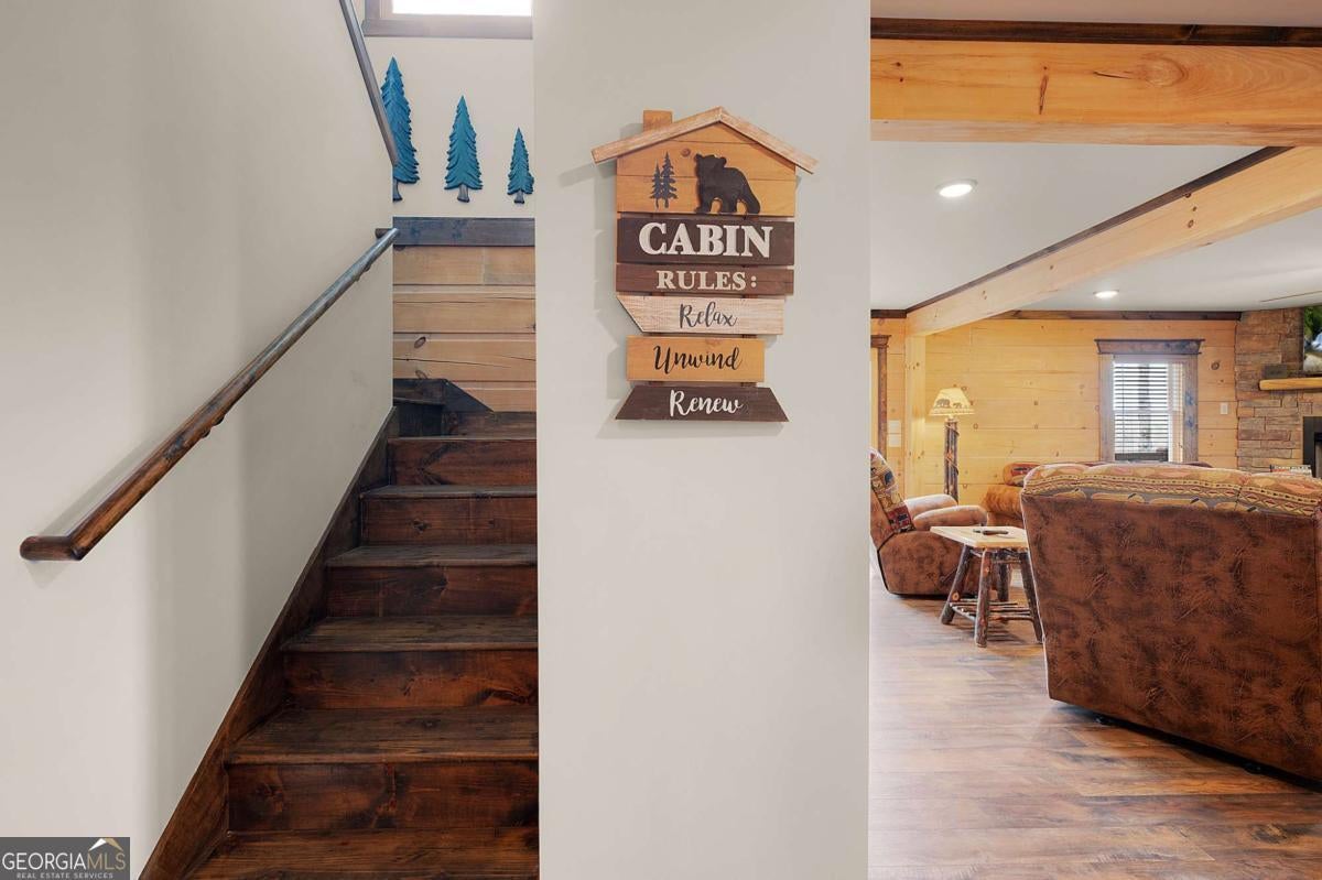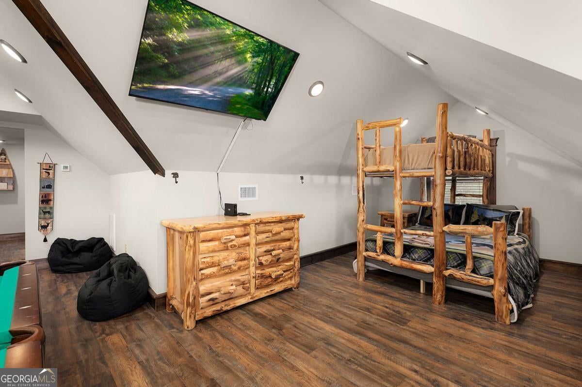 SERENITY!! Nestled atop a mountain, this magnificent log cabin offers a perfect blend of rustic charm and luxurious living. With breathtaking year-round mountain views and a serene valley below, this 4-bedroom, 2 1/2-bath home invites you to embrace the true essence of mountain living. Step inside, where an upscale kitchen and dining room combo await, perfect for entertaining. The spacious living room, featuring a stunning fireplace, provides a cozy ambiance for relaxing while enjoying the panoramic mountain vistas. Master on main floor with double vanity. Upstairs, discover three charming bedrooms, one with a large bonus/game room featuring bunks-a fantastic space for kids or guests. Immerse yourself in nature's beauty as you relax on the full wrap-around porches, where you can watch vibrant sunsets and unwind in the bubbling hot tub under a starlit sky. The crisp mountain air and the crackling fire pit create unforgettable moments of pure enjoyment. This home is ideally located close to downtown Blue Ridge and McCaysville, offering endless opportunities for outdoor adventures, while still being just minutes from local shops and dining. The property is also an active vacation rental, making it a fantastic investment opportunity. House is on 2.25 acres, with an additional adjacent parcel available for $160,000.