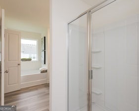 - Interior FeaturesDouble Vanity, High Ceilings, Pulldown Attic Stairs, Separate Shower, Soaking Tub, Walk-In Closet(s)