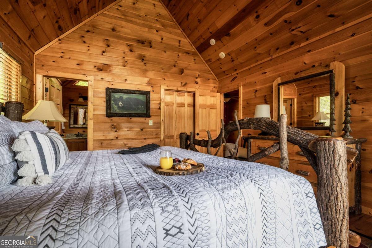 Welcome to your dream mountain retreat in the heart of the Aska Adventure Area! This stunning 3-bedroom, 3-bathroom cabin offers the perfect blend of rustic charm and modern convenience, making it an ideal choice for a vacation rental, weekend getaway, or full-time residence. Nestled amidst the breathtaking beauty of the mountains, this cabin boasts expansive deck space, perfect for entertaining or simply soaking in the year-round mountain views. Each level of the home features a bedroom and bathroom, providing privacy and comfort for all guests. The primary suite, located upstairs, is a true sanctuary with an ensuite bathroom and a private deck where you can enjoy your morning coffee while taking in the serene surroundings. The terrace level is designed for fun and relaxation, featuring a game room and additional deck space complete with a hot tub. Imagine unwinding here after a day of adventure, surrounded by the tranquility of nature. This property is being sold turn-key, ensuring a seamless transition for those looking to invest in a vacation rental or move in immediately. With its prime location less than 5 miles from downtown Blue Ridge, you'll have easy access to the area's best shops and restaurants, while still enjoying the peace and privacy of your mountain haven. Don't miss the opportunity to own this exceptional cabin in one of Georgia's most sought-after destinations. Whether you're seeking adventure or relaxation, this home offers the perfect base for all your mountain adventures.