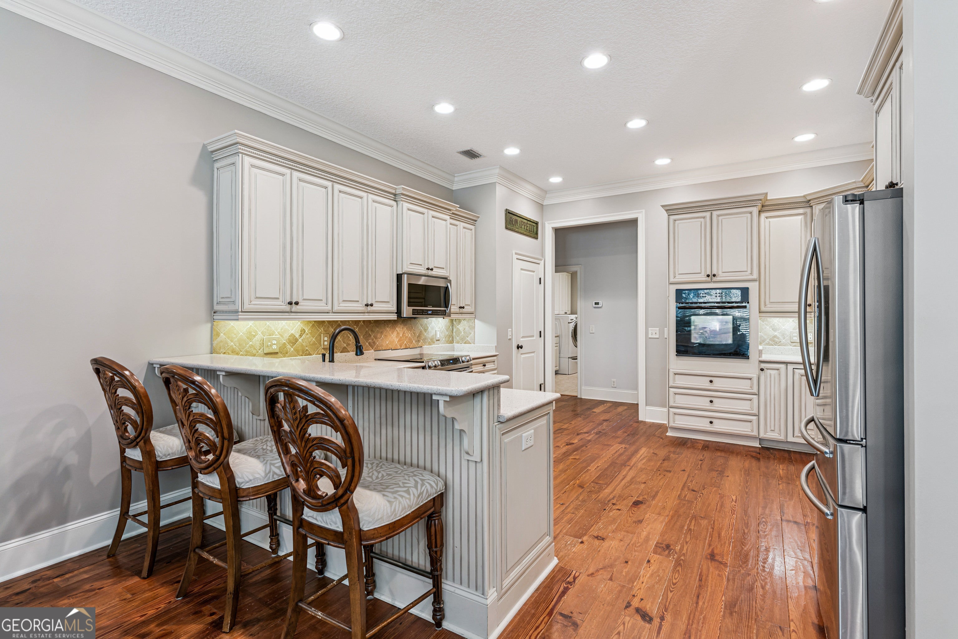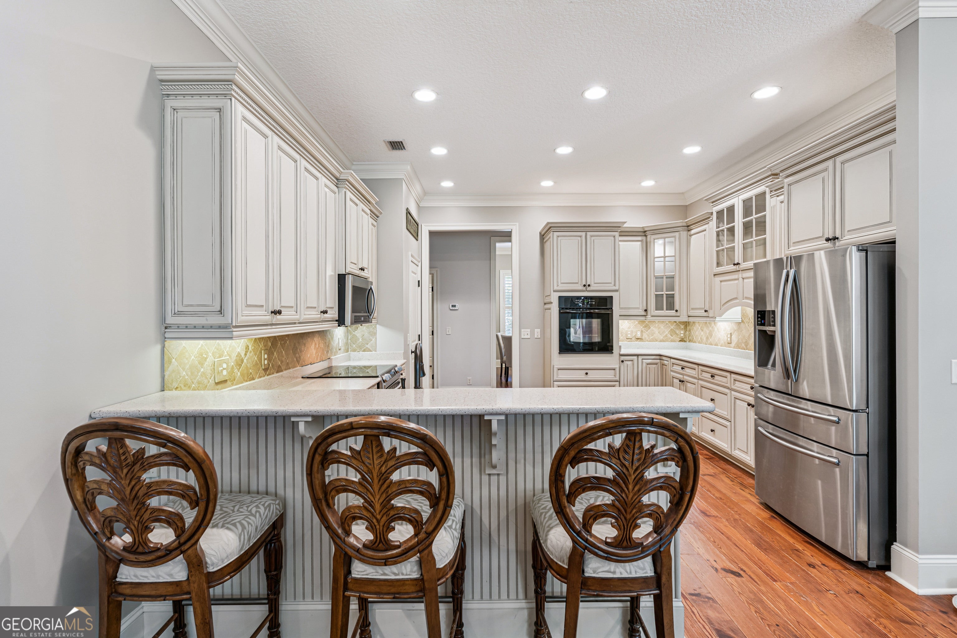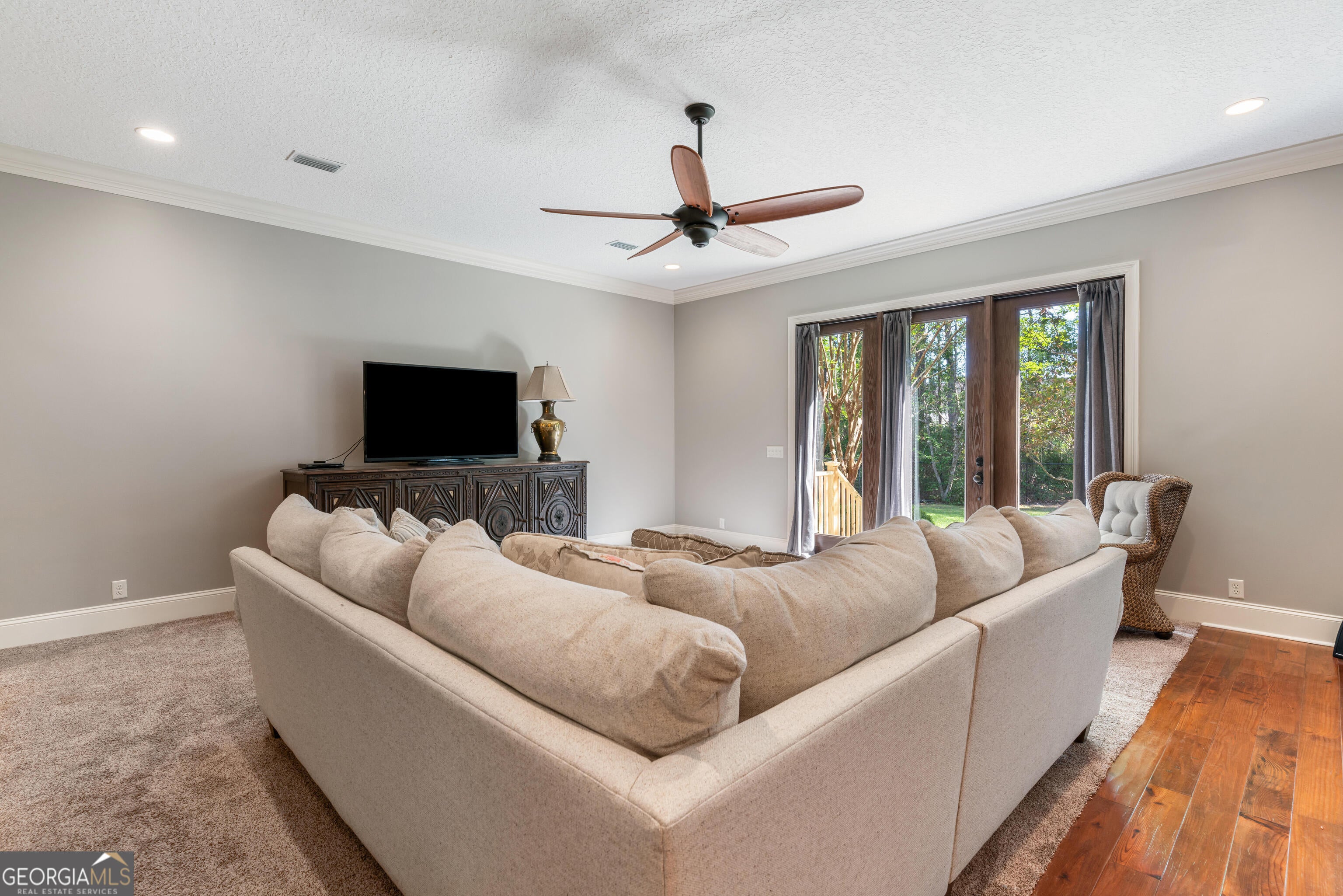 With over 4,500 square feet of living space on just over an acre, this home offers the perfect balance of space, comfort, and privacy-both inside and out. A thoughtfully designed split floor plan separates the main-level guest bedrooms from the primary suite, creating a peaceful retreat for homeowners. The spacious primary suite features dual closets and a well-appointed bath with double vanities, a soaking tub, separate shower, and private water closet. At the heart of the home, the expansive family room seamlessly connects to the main dining area and oversized kitchen-ideal for both everyday living and entertaining. The kitchen is equipped with quartz countertops, stainless steel appliances, a second oven, abundant prep space, and a welcoming bar seating area. Step outside to enjoy the large, private backyard with mature landscaping and plenty of room to add a pool. The main level also includes a formal living room, formal dining room, and dedicated office -offering flexibility for a variety of lifestyles. Upstairs, you'll find an incredibly spacious, apartment-like suite complete with a separate bedroom, full bathroom, wet bar, and two walk-in closets-perfect for guests, multi-generational living, or a private retreat. Located within the gated community of Foxcreek Estates, where 1+ acre homesites provide exceptional privacy, this property also offers convenient access to shopping, dining, I-95, and is just a short drive to St. Simons Island, Jekyll Island, and Downtown Brunswick. Not pictured-but absolutely worth seeing: the welcoming foyer, formal living room with fireplace and built-ins, dedicated office, additional main-floor bedroom, expansive upstairs suite, and large garage.