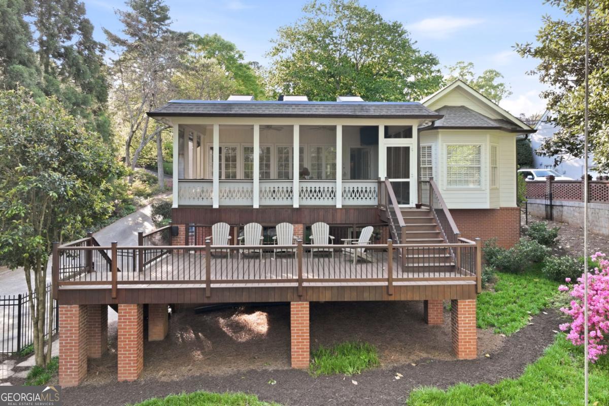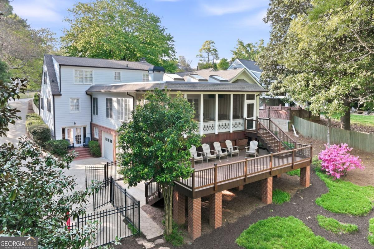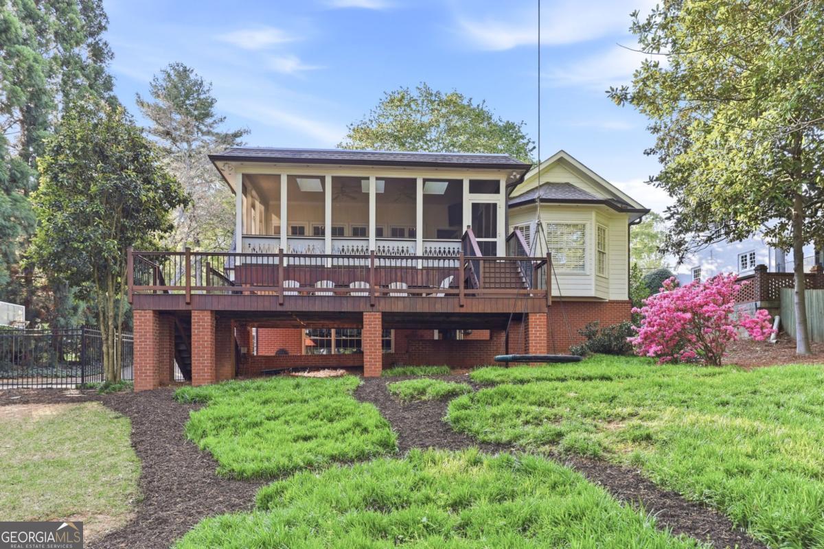 Located in the heart of Gainesville, this classic Longstreet Hills home set behind a white picket fence has a quiet, welcoming feel from the start. Just minutes from Northeast Georgia Medical Center and the Gainesville Square, it's an easy, breezy golf cart ride to parks, schools, shopping, and restaurants. Come inside where you will find a fully updated and modern interior. The main level is designed for both everyday living and hosting. A large family room with a cozy fireplace anchors the home, while a separate dining room is ready for holidays and guests. There's also a home office or additional sitting room on the main floor-tucked away with endless options. The main level also includes two en-suite bedrooms: a spacious primary suite with a renovated bath and generous closet spaces and an additional bedroom and bath for family or guests. Upstairs offers two large bedrooms and a shared bath, while the lower level features a private bedroom and bath, along with a game room and wine cellar. Adding to the modern amenities is a large garage accommodating two large SUV's, as well as a covered area for your golf cart or grill area for outdoor parties. With abundant storage available throughout the house, the large storage room is the perfect place for a home gym should you choose to do so! Step outside to find the most park-like setting with an enormous stone fire pit area designed for gathering with friends and a playground nestled on a manicured lawn. Adults can also enjoy a little quiet time sitting on the screened porch off the back of the house while the children enjoy catching fireflies in the evening. This is the kind of home that feels easy from the start-and even better over time. Everything about it just works, the way a good home should! *picket fence is brand new and will be painted white again as soon as the wood cures!
