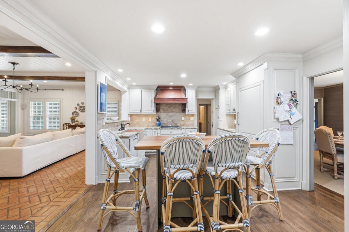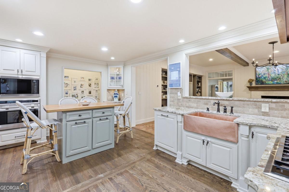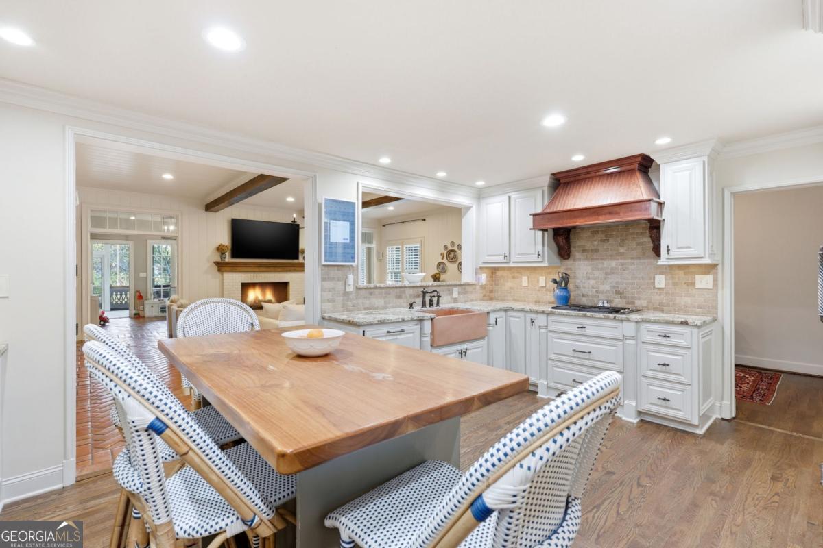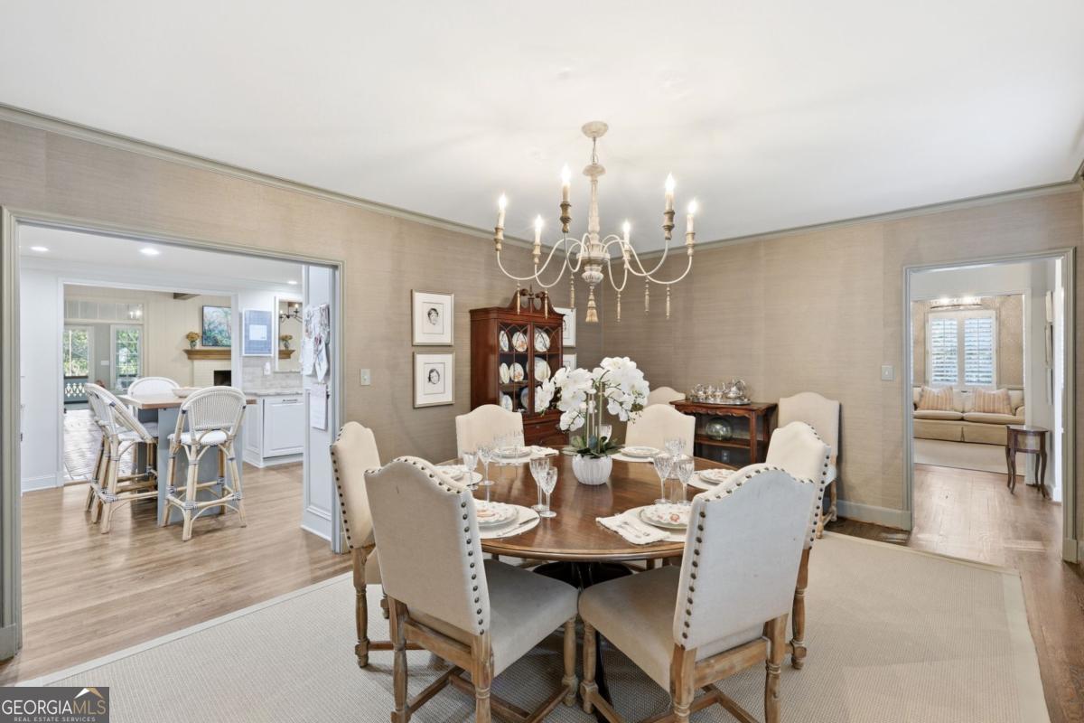 Located in the heart of Gainesville, this classic Longstreet Hills home set behind a white picket fence has a quiet, welcoming feel from the start. Just minutes from Northeast Georgia Medical Center and the Gainesville Square, it's an easy, breezy golf cart ride to parks, schools, shopping, and restaurants. Come inside where you will find a fully updated and modern interior. The main level is designed for both everyday living and hosting. A large family room with a cozy fireplace anchors the home, while a separate dining room is ready for holidays and guests. There's also a home office or additional sitting room on the main floor-tucked away with endless options. The main level also includes two en-suite bedrooms: a spacious primary suite with a renovated bath and generous closet spaces and an additional bedroom and bath for family or guests. Upstairs offers two large bedrooms and a shared bath, while the lower level features a private bedroom and bath, along with a game room and wine cellar. Adding to the modern amenities is a large garage accommodating two large SUV's, as well as a covered area for your golf cart or grill area for outdoor parties. With abundant storage available throughout the house, the large storage room is the perfect place for a home gym should you choose to do so! Step outside to find the most park-like setting with an enormous stone fire pit area designed for gathering with friends and a playground nestled on a manicured lawn. Adults can also enjoy a little quiet time sitting on the screened porch off the back of the house while the children enjoy catching fireflies in the evening. This is the kind of home that feels easy from the start-and even better over time. Everything about it just works, the way a good home should! *picket fence is brand new and will be painted white again as soon as the wood cures!