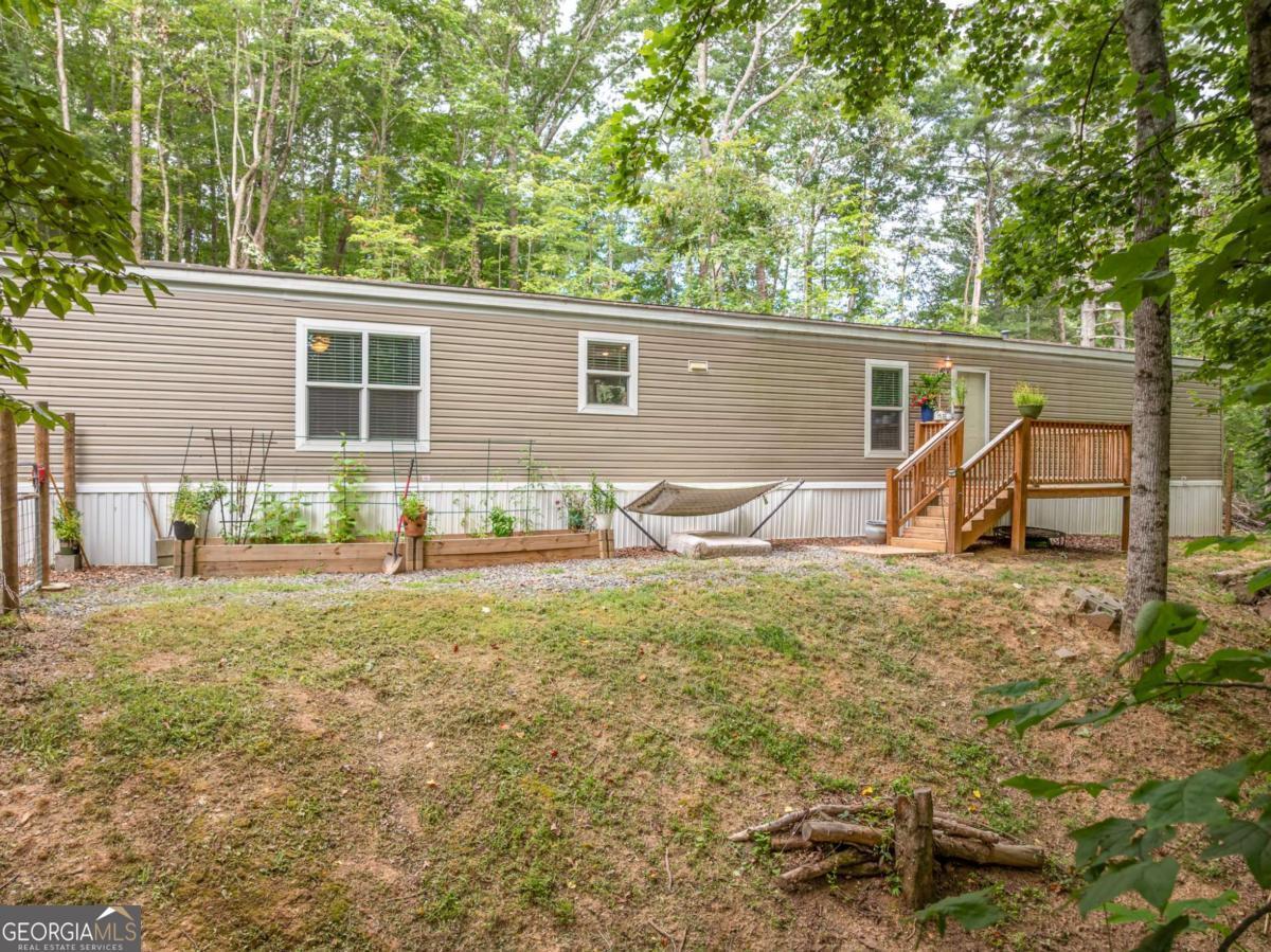 Traditional Financing Available! This like-new 2023 Clayton Homes Anniversary Model offers incredible value, sitting high and dry on 1.16 private acres. With 3 bedrooms, 2 full baths, and a dedicated laundry room conveniently located just off the primary suite that has a garden tub and a shower. This 16'x76' home is thoughtfully laid out for comfort and functionality. The large covered back porch was recently added to soak up the peaceful setting while relaxing, reading a book, or entertaining family and friends. A detached shed with plumbing, heat, and water opens the door to endless possibilities-guest space, workshop, hobby room, or home office. Located just off Boardtown Road, you'll enjoy quick access to both Ellijay and Blue Ridge. Quiet, paved streets and peaceful natural surroundings make this a perfect retreat or full-time residence. Short term and long term rentals are allowed. Don't miss this opportunity-affordable, move-in ready, and ready for financing!