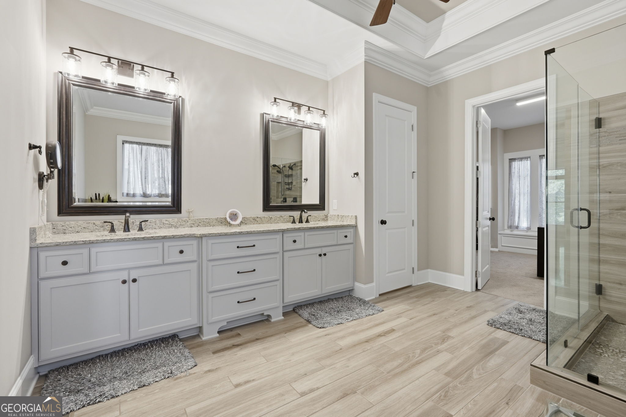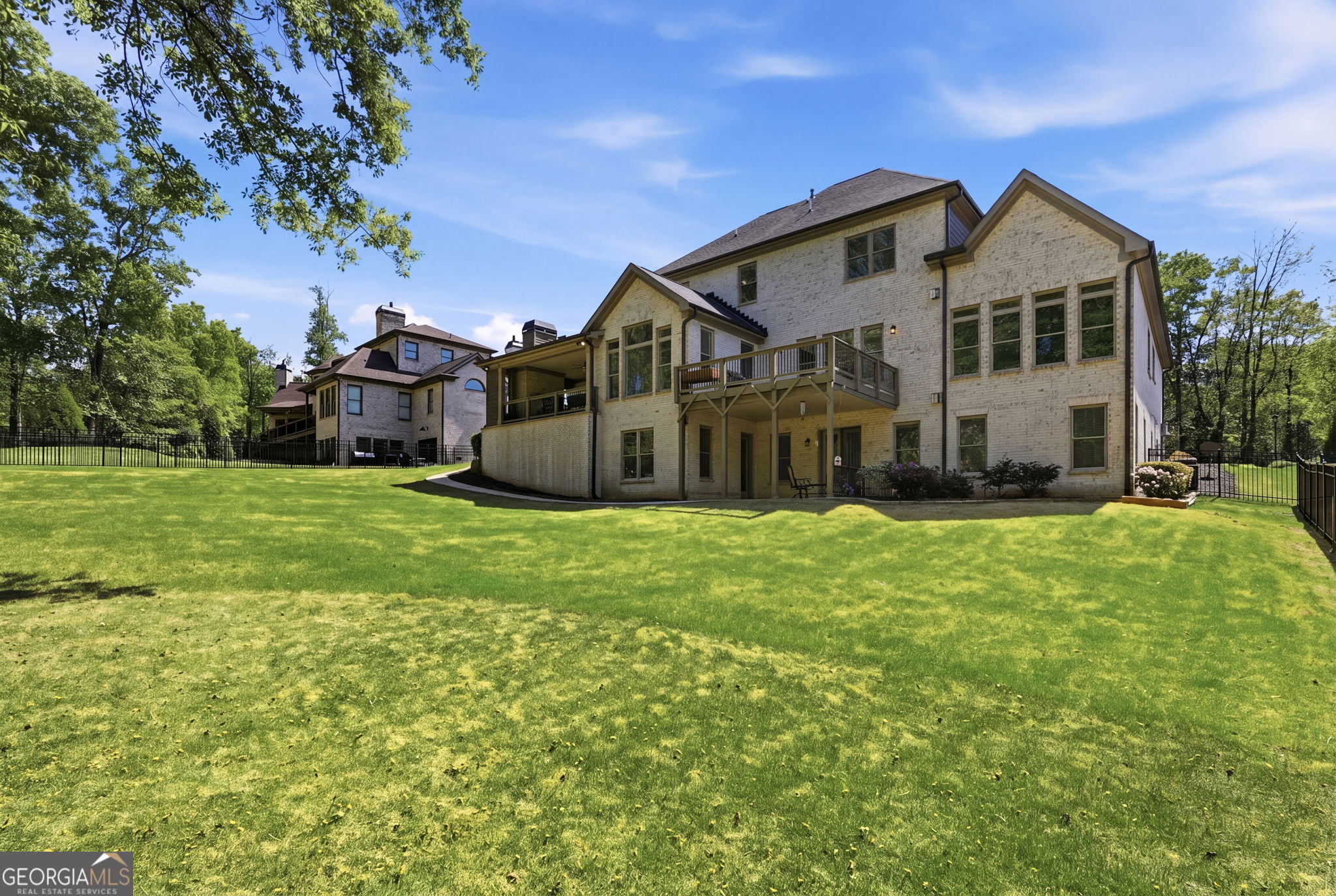 BUFORD CITY SCHOOLS - GATED COMMUNITY - 8 Beds 6 1/2 Bath - Basement In Law Suite. This spacious family home offers both comfort and character. Inside, you'll find a Chef's kitchen featuring sleek stainless steel appliances with double oven , crisp white cabinetry and large island perfect for family meals or entertaining guests. Around the corner you will find a large pantry, a laundry room with extra space, mud room and a side entry door. The formal dining room is generously sized and boasts windows overlooking the rock front porch and landscaped front yard. The dining room offers plenty of space for a large dining room table. Off the kitchen is a keeping room with cedar beams that allows the perfect amount of natural light to bounce off the dark hard wood floors. A few steps off the kitchen you will find a brick covered porch with a fireplace and rock floor. This inviting space is ideal for enjoying morning coffee or evening relaxation while taking in views of the expansive backyard and wide life. On the opposite side, a door leads to an open deck for grilling and outdoor dining. The main floor, open concept, has a large family room, cedar coffered ceiling, lighted bookshelves, rock fireplace and allows ample seating. Main floor primary bedroom is oversized with a sitting area and has vaulted ceilings with cedar wood beams. Primary bath has double vanities, stand alone tub, and oversized shower which leads into a huge closet. Upstairs you find four oversized bedrooms. Two rooms with full baths and two rooms share a Jack and Jill. Each upstairs bedroom has a walk in closet. Basement has a full In-Law Suite with two bedrooms, living and dining area and laundry room. Living area also has a rock fireplace and book shelves. The basement bath has a double vanity, separate shower and walk in the closet. The walk in shower and the wide hallways allow easy access if needed. Basement also has a gym and two large storage spaces. Basement has an additional room for an office or study. The basement has two entry points and walkway to the driveway off the covered patio. The exterior is just as impressive, with mature landscaping. Additional features include fenced in flat back yard. This home has a Pest Ban System and Central Vacuum System. Owner/Agent