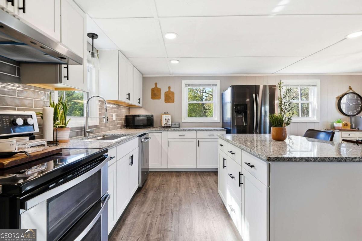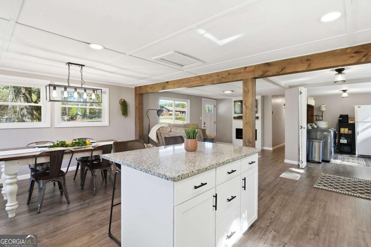 WELCOME HOME! This beautifully renovated 3-bedroom, 2-bath residence sits on a private 1.18-acre cleared lot in highly sought-after Cherokee County. Fully updated in 2022, this move-in-ready home features stylish LVP flooring and new carpet throughout, along with updated bathrooms showcasing tiled showers and baths, modern cabinetry, and sleek countertops. Brand-new windows flood the home with natural light, creating a bright and inviting atmosphere. Recent upgrades provide peace of mind, including a brand-new roof, HVAC system, gutters, and a spacious new back deck-perfect for entertaining or relaxing while enjoying the serene surroundings. With over an acre of usable land, the property offers endless possibilities and privacy. Located in the desirable Creekview School District, this home offers the rare combination of no HOA and no restrictions, giving you flexibility and freedom. Enjoy the convenience of being just 20 minutes from GA-400 and I-575, with easy access to Alpharetta, Cumming, Canton, and Ball Ground, plus nearby shopping and dining-all while benefiting from lower Cherokee County taxes. Additional highlights include motivated sellers, select furniture available for inclusion, and a rare opportunity for an assumable mortgage at an attractive 3.375% rate. This home truly offers space, modern updates, and an unbeatable location-don't miss your chance to make it yours!