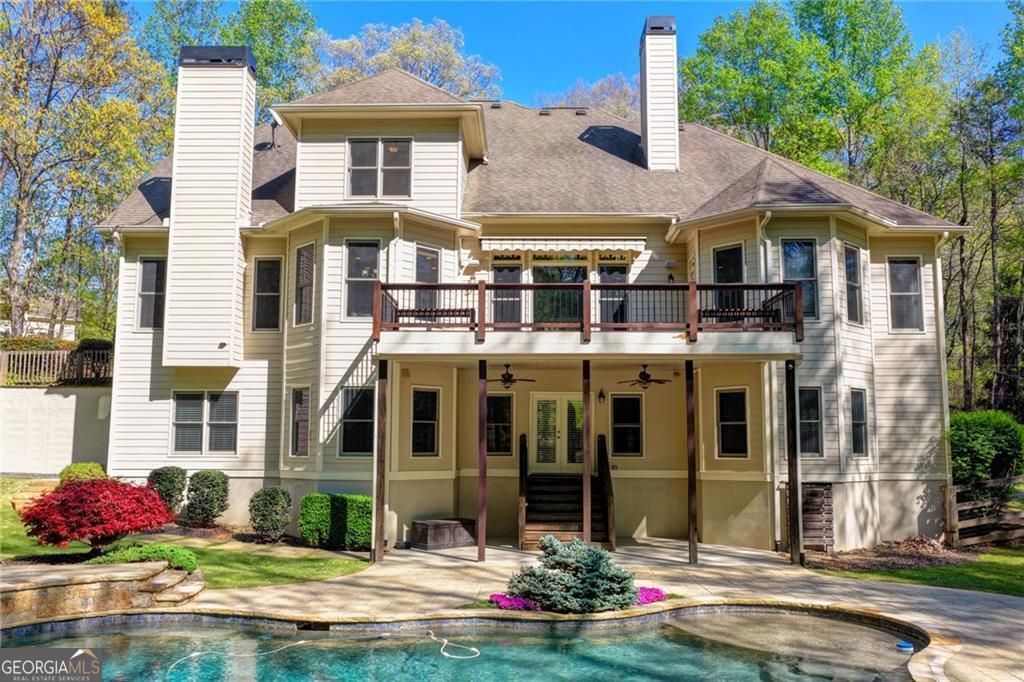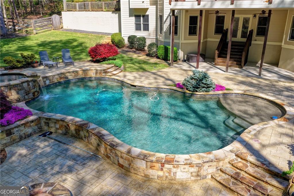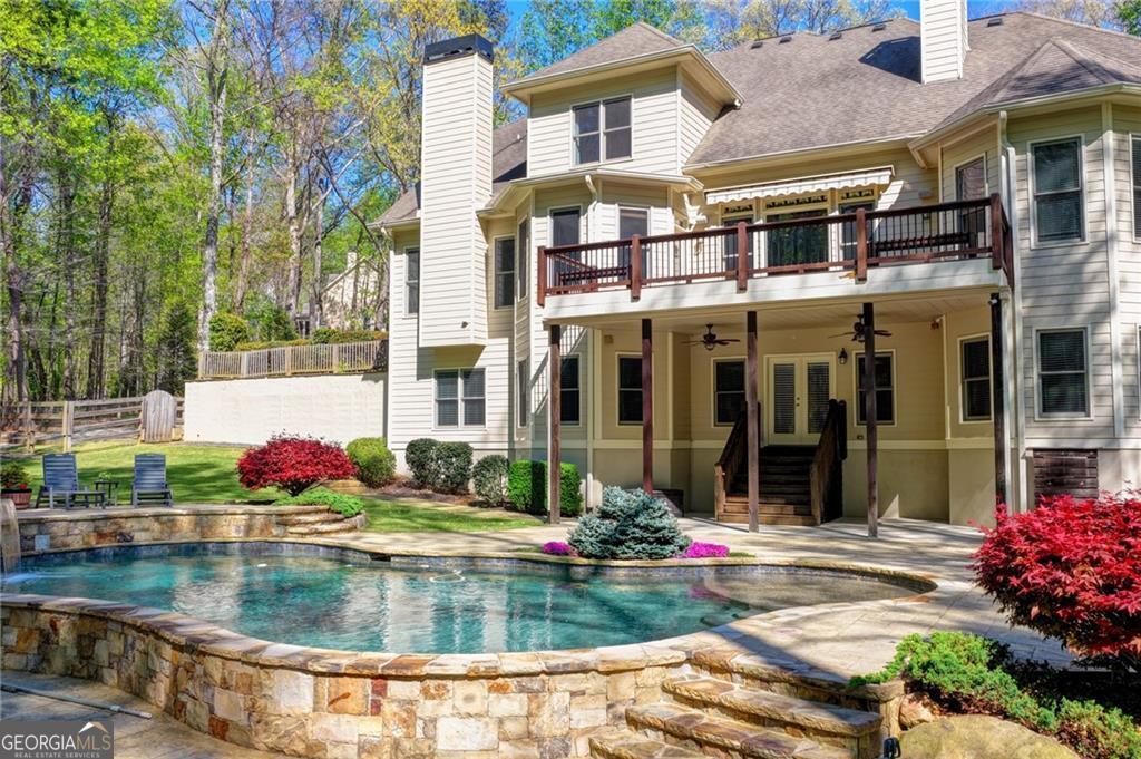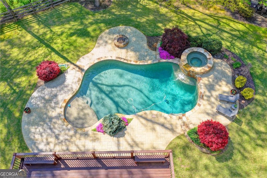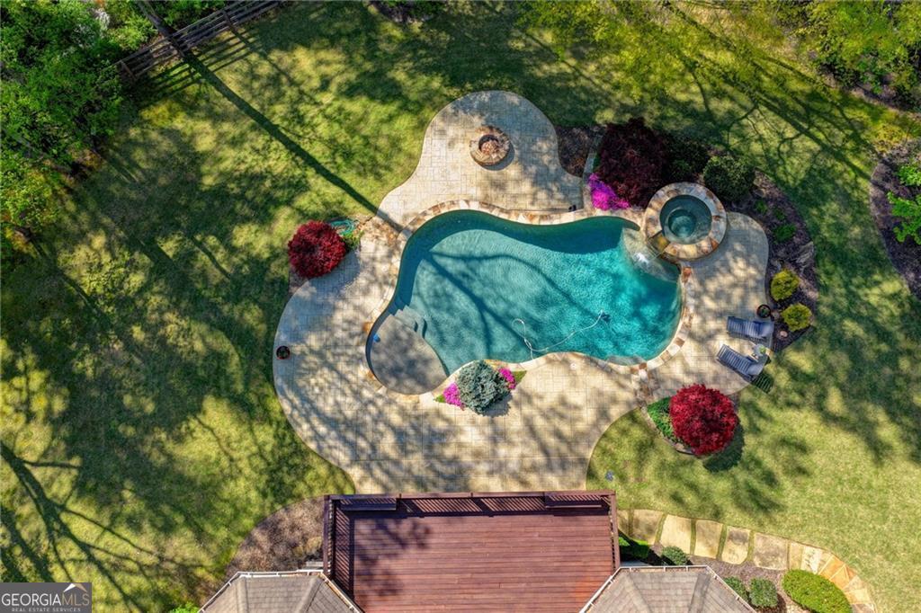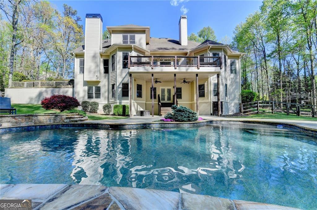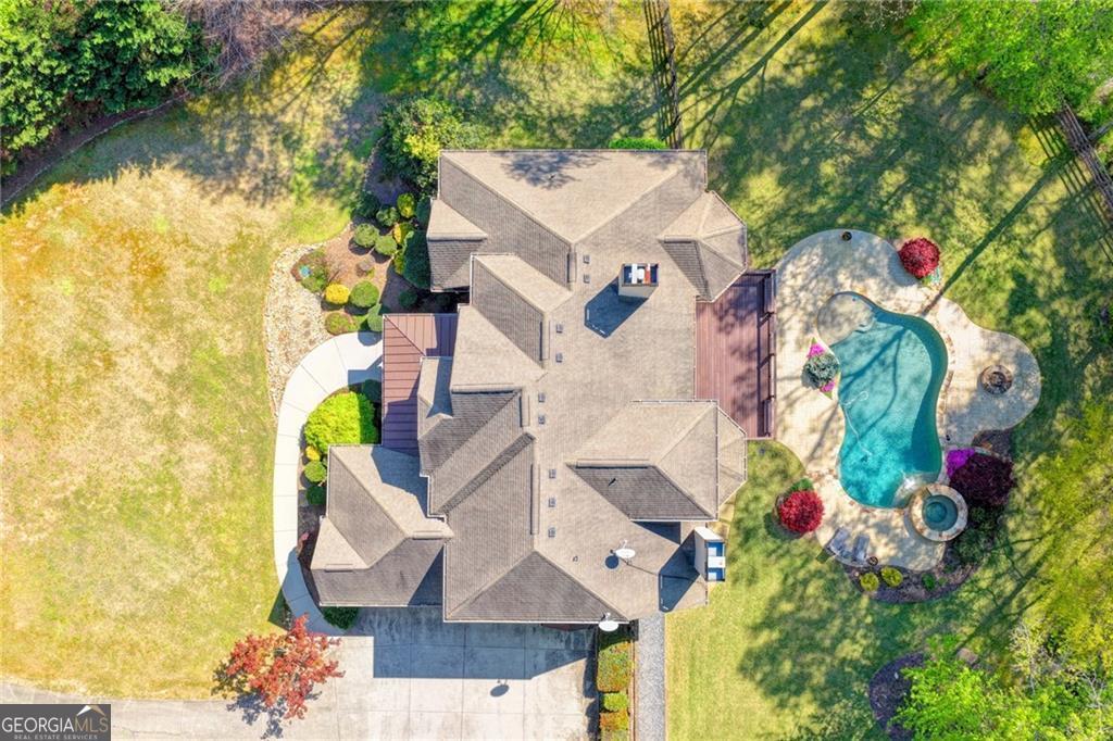Nestled on over three acres of private, wooded serenity, this exceptional 5-bedroom, 4.5-bath estate offers an extraordinary blend of refined luxury, comfort, and natural beauty. Surrounded by tranquil forest views, the property provides the ultimate private retreat while still remaining conveniently located to nearby amenities, schools, and major thoroughfares. The main-level owner's suite is a true sanctuary, featuring expansive windows that frame peaceful wooded vistas, a spa-inspired en suite bath, and two spacious walk-in closets designed for both elegance and functionality. Designed with entertaining and everyday living in mind, the chef's kitchen showcases high-end appliances, custom cabinetry, and a large center island, seamlessly flowing into a warm and inviting keeping room with a stunning stone fireplace-the perfect setting for casual dining or relaxing with family and friends. The grand great room is equally impressive, highlighted by a dramatic stone fireplace and custom built-ins, creating an elegant gathering space ideal for hosting or quiet evenings at home. Upstairs, you'll find three generously sized bedrooms and two full bathrooms, offering comfort and privacy for family or guests. The finished terrace level elevates the home's entertainment and wellness experience. Highlights include a luxurious spa bath, a spacious game room perfect for movie nights or watching the big game, a dedicated exercise room, an additional bedroom, flexible living spaces, and ample storage. Step outside to your own resort-style backyard retreat. A heated saltwater pool and spa provide the perfect setting for relaxation, while the custom-built fire pit invites memorable evenings under the stars. The surrounding 3+ acres of mature wooded landscape offer exceptional privacy and a peaceful setting ideal for nature walks and outdoor enjoyment. Additional features include a 3-car garage and high-end finishes throughout, including hardwood floors, custom millwork, and designer fixtures. Whether you're entertaining poolside, relaxing fireside, or simply enjoying the quiet beauty of the surrounding woods, this remarkable estate offers a lifestyle of luxury, privacy, and timeless elegance.