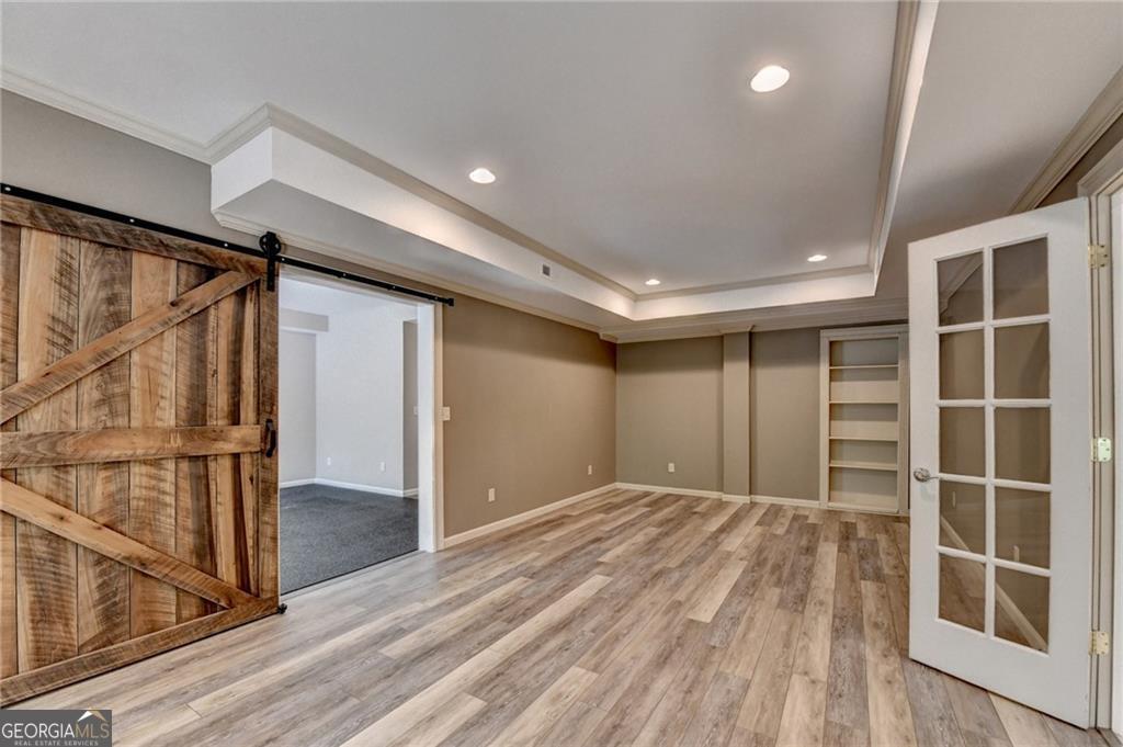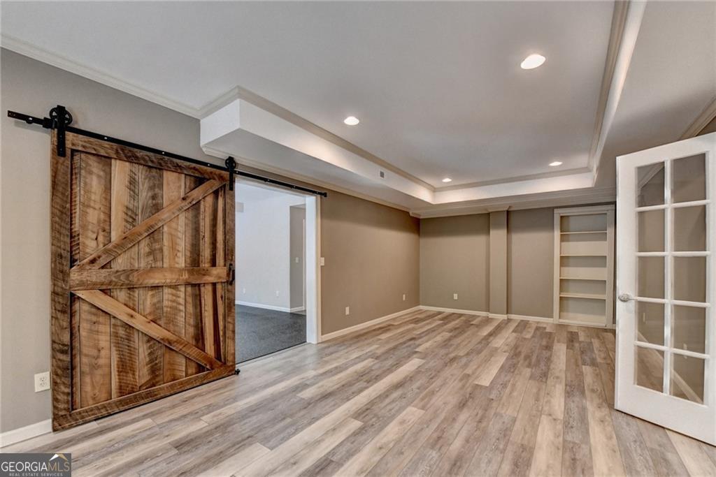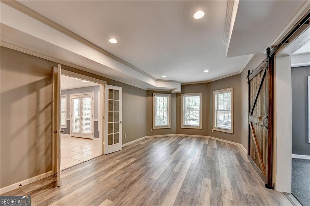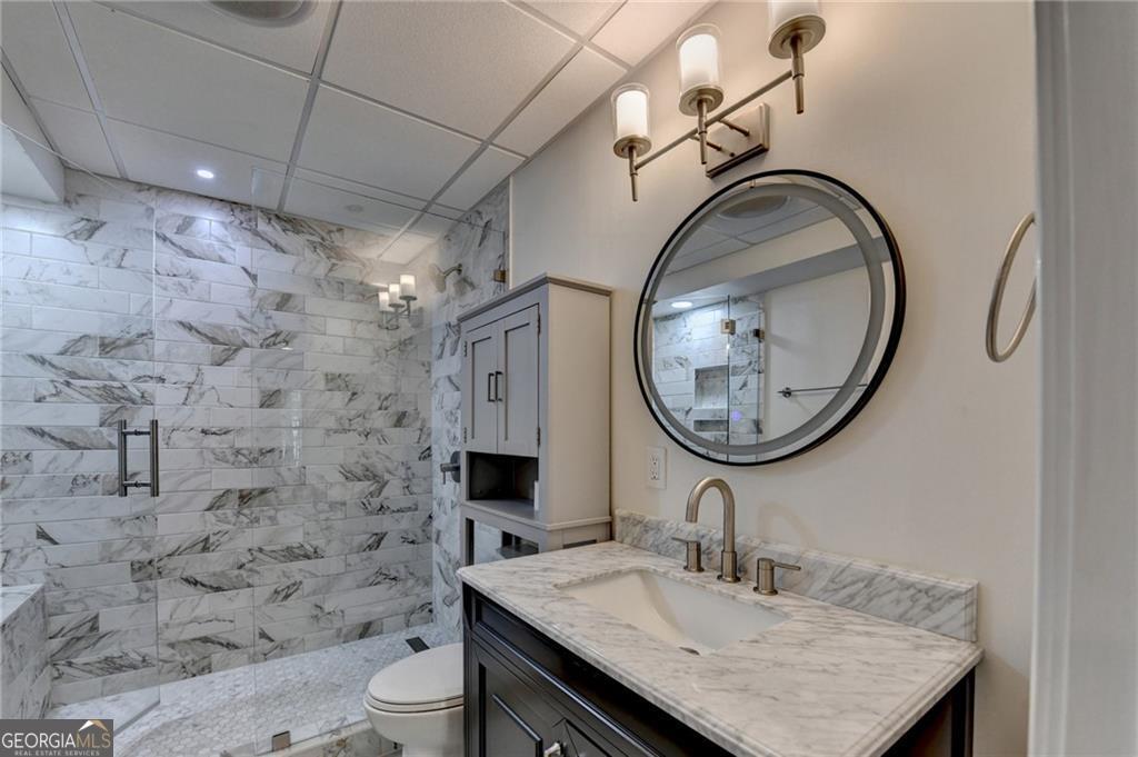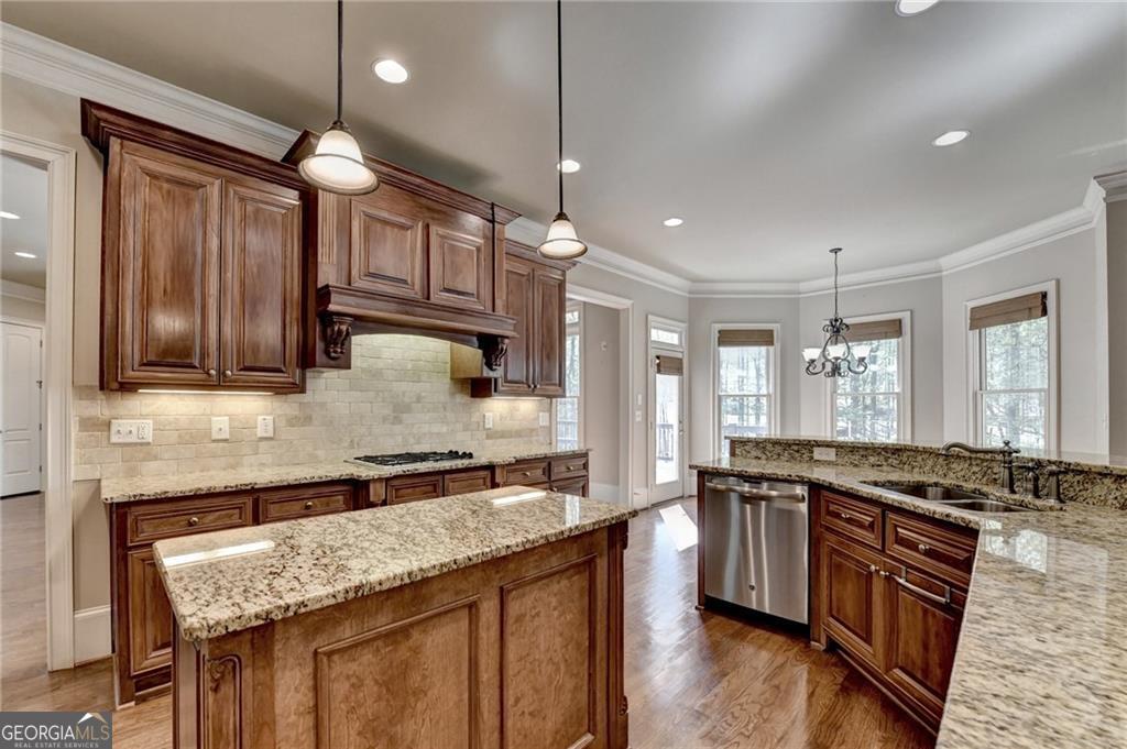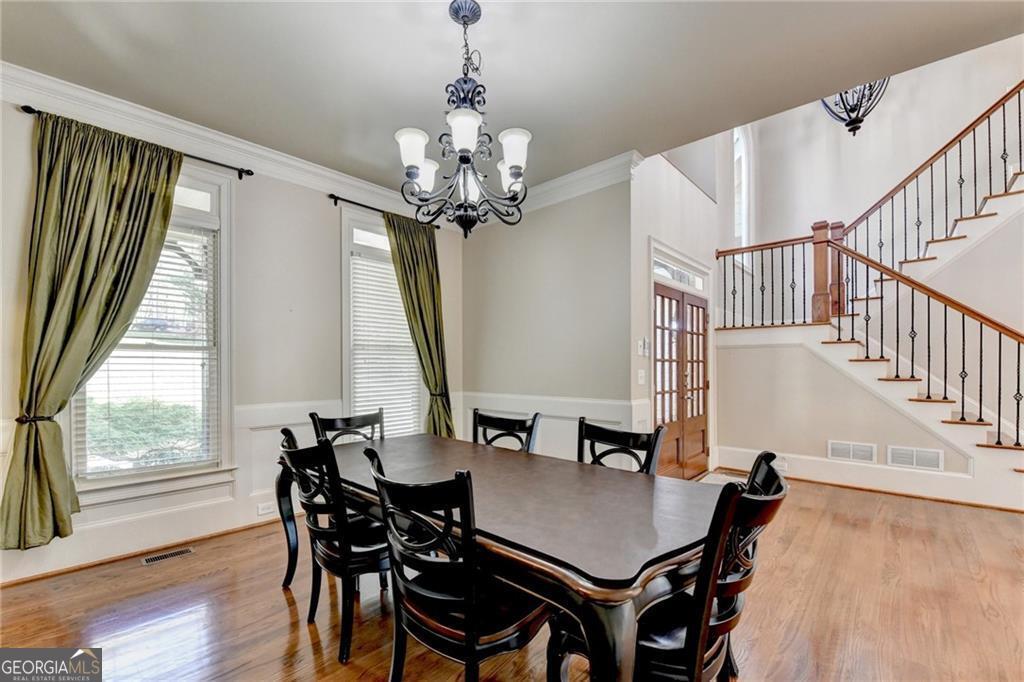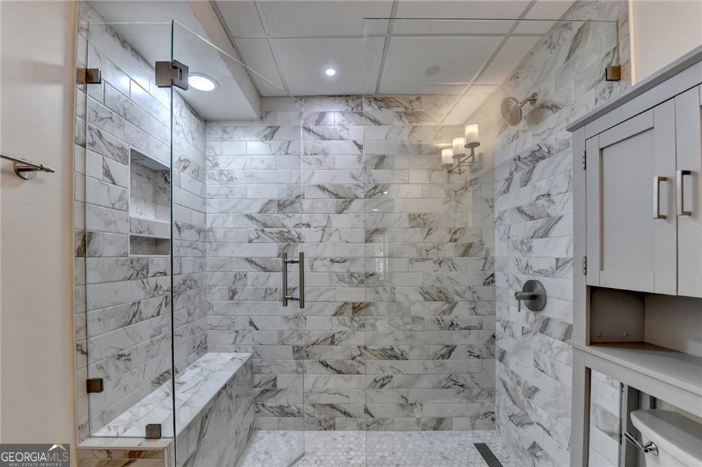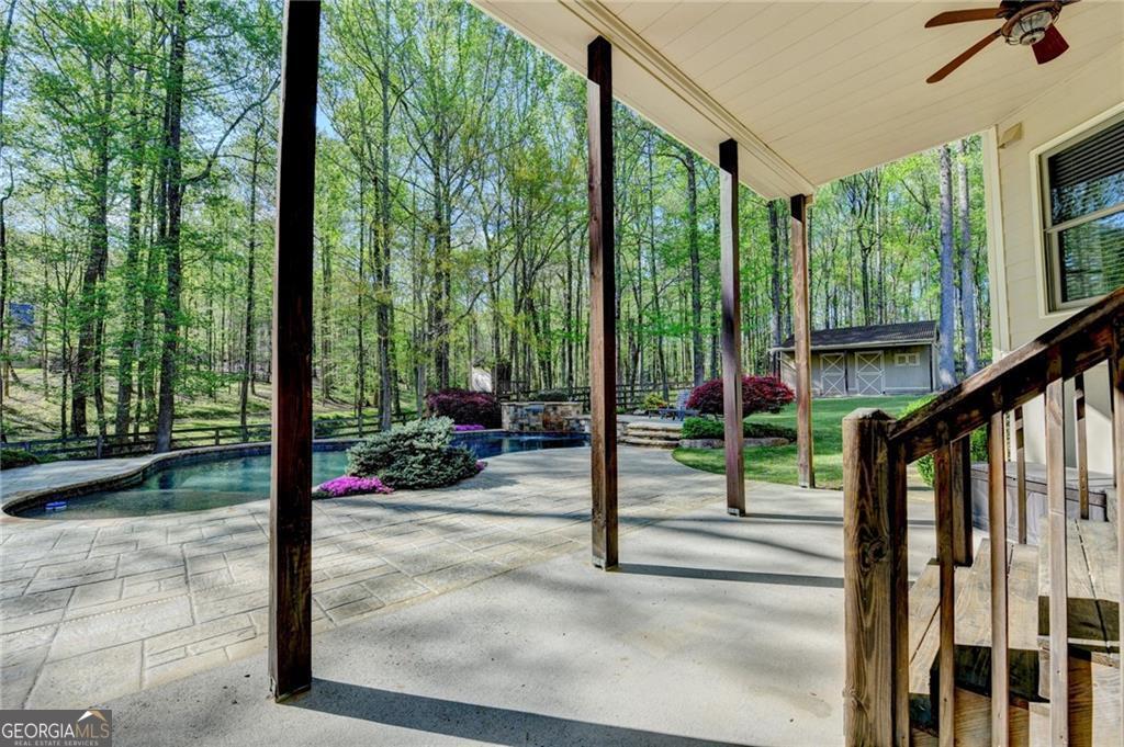 Nestled on over three acres of private, wooded serenity, this exceptional 5-bedroom, 4.5-bath estate offers an extraordinary blend of refined luxury, comfort, and natural beauty. Surrounded by tranquil forest views, the property provides the ultimate private retreat while still remaining conveniently located to nearby amenities, schools, and major thoroughfares. The main-level owner's suite is a true sanctuary, featuring expansive windows that frame peaceful wooded vistas, a spa-inspired en suite bath, and two spacious walk-in closets designed for both elegance and functionality. Designed with entertaining and everyday living in mind, the chef's kitchen showcases high-end appliances, custom cabinetry, and a large center island, seamlessly flowing into a warm and inviting keeping room with a stunning stone fireplace-the perfect setting for casual dining or relaxing with family and friends. The grand great room is equally impressive, highlighted by a dramatic stone fireplace and custom built-ins, creating an elegant gathering space ideal for hosting or quiet evenings at home. Upstairs, you'll find three generously sized bedrooms and two full bathrooms, offering comfort and privacy for family or guests. The finished terrace level elevates the home's entertainment and wellness experience. Highlights include a luxurious spa bath, a spacious game room perfect for movie nights or watching the big game, a dedicated exercise room, an additional bedroom, flexible living spaces, and ample storage. Step outside to your own resort-style backyard retreat. A heated saltwater pool and spa provide the perfect setting for relaxation, while the custom-built fire pit invites memorable evenings under the stars. The surrounding 3+ acres of mature wooded landscape offer exceptional privacy and a peaceful setting ideal for nature walks and outdoor enjoyment. Additional features include a 3-car garage and high-end finishes throughout, including hardwood floors, custom millwork, and designer fixtures. Whether you're entertaining poolside, relaxing fireside, or simply enjoying the quiet beauty of the surrounding woods, this remarkable estate offers a lifestyle of luxury, privacy, and timeless elegance.