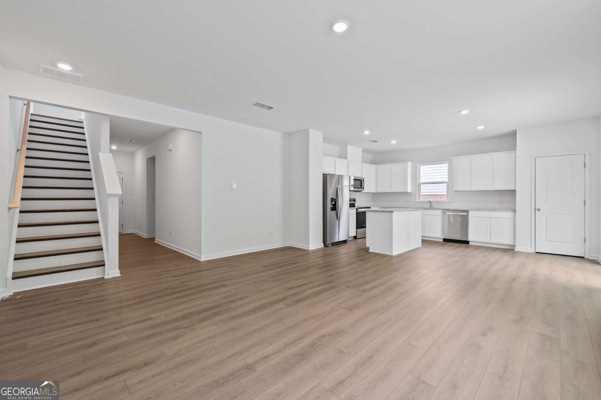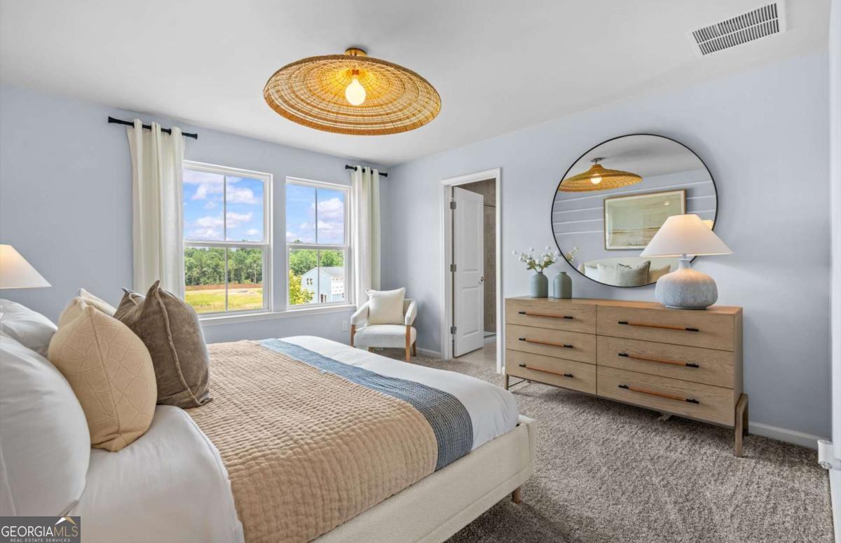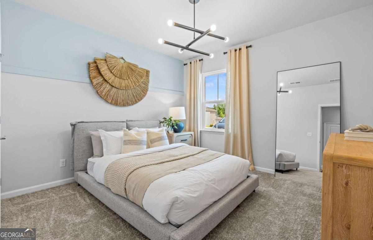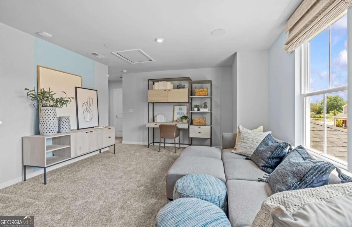 Completion May! Welcome to this thoughtfully designed new construction Raven floor plan offering modern comfort and functional living in the Avery Ridge community. The main level includes a private guest bedroom with a full bath, along with an open kitchen featuring 42 inch warm burlap cabinetry, quartz countertops, and a large island that flows seamlessly into the main living space, creating an inviting atmosphere for daily living and entertaining. Tile finishes in the showers and tub surrounds add a clean, upgraded touch. Upstairs, a flexible loft area provides additional space for relaxing, working, or play. The backyard offers a peaceful wooded setting, ideal for enjoying quiet moments or hosting guests. Avery Ridge features community amenities such as a pool, cabana, and sidewalks, all within a serene setting just minutes from downtown Gainesville's shops, dining, and entertainment. Conveniently located near I 985 and Athens Hwy for easy commuting. Ask about current financing options and closing cost offerings available with the preferred lender. Photos are of model and similar floor plan, not actual home.
