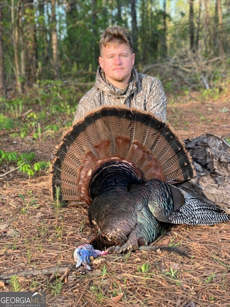 Turkey Ridge is a 199-acre, turn-key hunting and recreational property located in highly sought-after Taylor County, Georgia. This diverse and well-managed tract is ready for immediate enjoyment as one can step in and start hunting on day one. The property features nine established food plots, strategically positioned among prime bedding areas and mast-producing hardwoods to maximize wildlife activity. Improvements include three newly built custom "Fat Boy" box blinds, along with additional trough feeders, ladder stands, and other hunting setups already in place. An extensive internal road system provides convenient access throughout nearly the entire property, making navigation easy whether you're hunting, managing, or simply exploring. The land is covered in 20-year-old natural pine timber, offering excellent bedding and fawning cover, with future income potential from thinning in the near term. Three distinct hardwood bottoms and ridge systems are scattered across the tract, featuring mature, mast-producing hardwoods that consistently attract and hold wildlife. These hardwoods also serve as reliable turkey roosting areas year after year. Wildlife populations here are exceptional. The property boasts outstanding turkey hunting, with frequent sightings of large groups in the food plots and multiple gobblers heard throughout the Spring. The deer population is equally impressive, with Taylor County well-known for producing trophy-quality bucks and maintaining high deer densities. According to the current owner, it's common to see deer on nearly every morning or evening sit. A strong flowing, year-round creek flows through the southwest corner of the tract. It would make an excellent duck impoundment, small pond, or leave as is for year round water for wildlife here. A well-maintained cabin site is situated just inside the main entrance, complete with access to power and a well. A covered shelter is also in place for storing equipment and hunting gear. With paved frontage on Wainwright Road, the property offers both easy access and privacy, as the majority of the acreage sits well off the paved road. Whether you're searching for a premier hunting retreat, a timber investment, or a private escape in the country, Turkey Ridge is a property that deserves your attention.