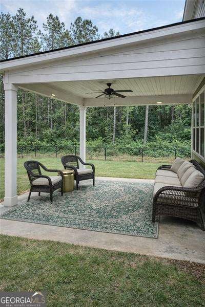 Showings to begin Friday April 17th. Welcome to Fenwick Farms! This nearly new, gorgeous home sits on an amazing private 3.82 acre with a fenced backyard. The open floor plan invites you in to the formal dining room with versatility as a bonus room/office with judges paneling. The kitchen is open to the breakfast area and the family room with a gas fireplace. It boasts a gas stove, quartz countertops, a huge island with bar seating, plenty of cabinet storage and a walk-in pantry. The primary suite has a sitting area/nook, as well as a spacious bathroom with his and her sinks, garden tub, separate tiled shower, and a walk-in closet with custom shelving. Entertaining is a breeze with the covered patio wired for a TV and the fenced in backyard with views of the wooded lot. Additional features include attic space over the garage, built-in ceiling storage system in the garage, energy efficient windows, and high speed internet.