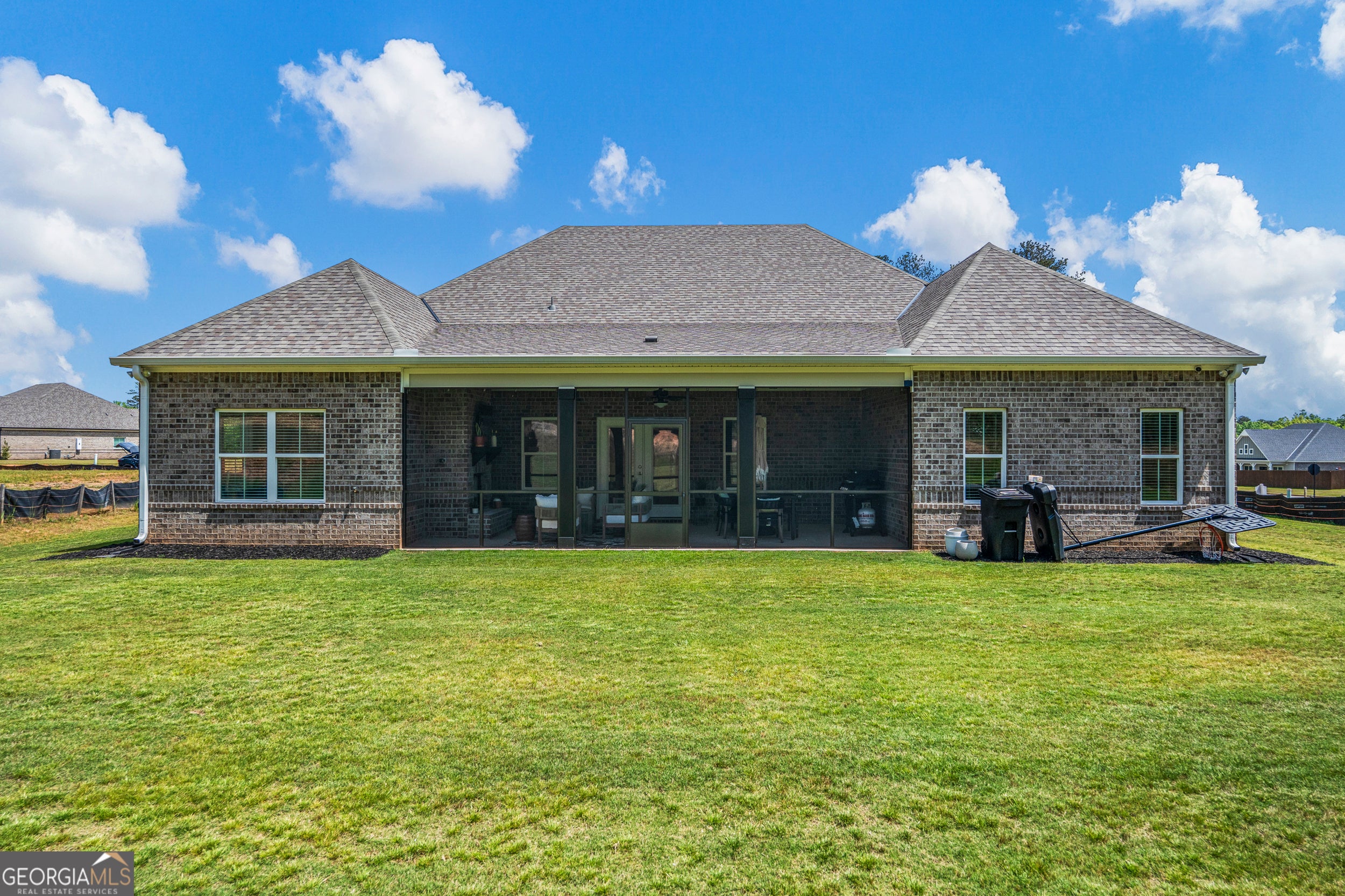 This stunning, better-than-new home is filled with thoughtful upgrades and exceptional features. Situated on a flat lot, it offers a long driveway with a side-entry garage and inviting curb appeal. Exterior highlights include a charming front porch, a full sprinkler system, and a spacious screened-in back porch complete with a fireplace. The fireplace features gas logs and is pre-wired for a television-perfect for game days and entertaining. The neighborhood also offers outstanding amenities, including a fabulous community pool and sidewalks ideal for evening walks. Inside, the home is truly impressive. Double front doors welcome guests into a wide hallway with a beautiful view of the living room, which also features a gas-log fireplace. The open layout connects the large living room to the dining area and the chef's kitchen. The kitchen stands out with a generous island, quartz countertops, walk-in pantry with wood shelving, gas cooktop, true vent hood, wall oven, microwave, island storage, and even a built-in wine rack. Just off the kitchen is a versatile room currently used as an office but perfectly suited for a dining room or flex space. The split bedroom floor plan provides privacy, with the primary suite offering a spacious bedroom, sitting area, walk-in closet, and a luxurious bath featuring a separate tub and tiled shower. The seller has also upgraded the home with elegant push-button electrical switches-one of many details that set this home apart. With so many exceptional features, this home is easy to fall in love with. Schedule your showing today. Welcome home to Harris County!