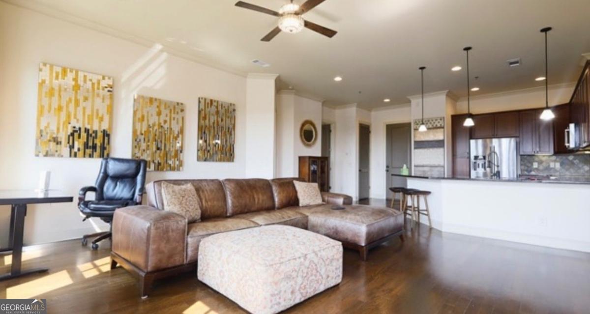 Experience elevated living in this top-floor 1-bedroom condo at 360 Chambers Street, nestled in the heart of Downtown Woodstock. This bright and open unit boasts 10-foot ceilings, hardwood floors, and a functional layout designed for modern comfort. The kitchen features granite countertops, stainless steel appliances, and a breakfast bar that seamlessly connects to the spacious living area. Step out onto your private balcony to enjoy views of the vibrant downtown scene. The generously sized bedroom includes a walk-in closet and a full bath with a soaking tub and separate shower. Accessibility is a highlight, with elevator access, secure building entry, and assigned garage parking, catering to those seeking single-level, low-maintenance living. Location is everything, and this condo delivers. You're just steps from local favorites including a steakhouse, sushi bar, gastropub, and coffee shops - plus yoga studios, boutiques, and live entertainment venues. The community also offers a pool, fitness center, clubhouse, and nearby access to parks and trails. Embrace the blend of urban convenience and small-town charm in this exceptional Downtown Woodstock residence.
