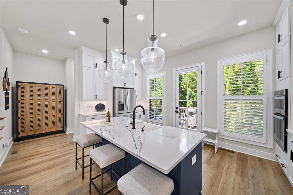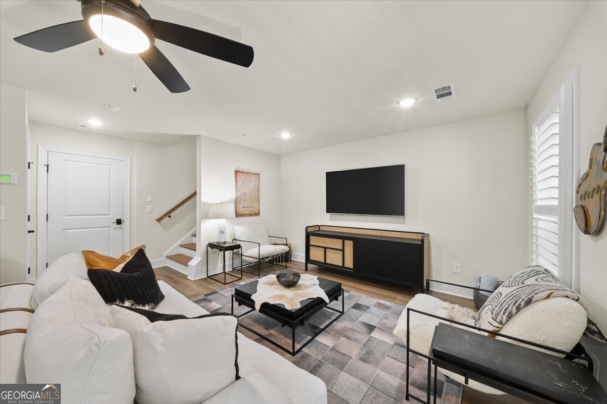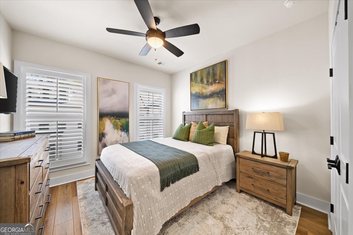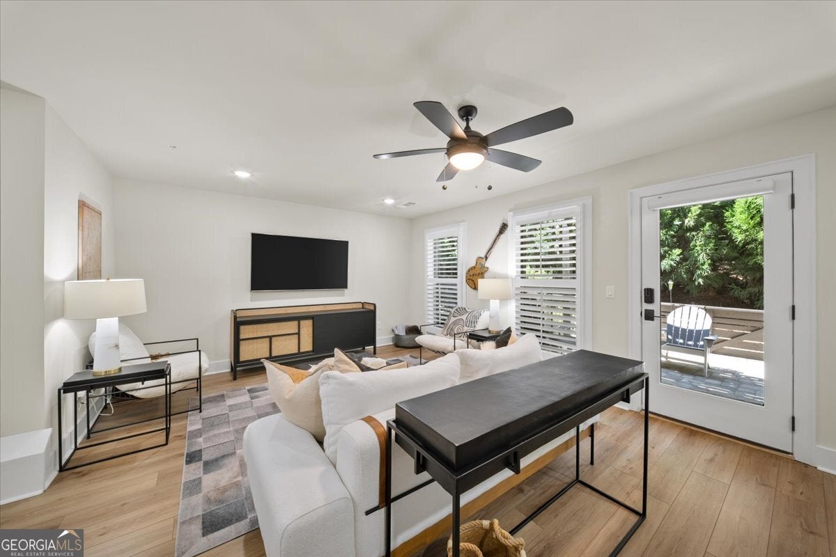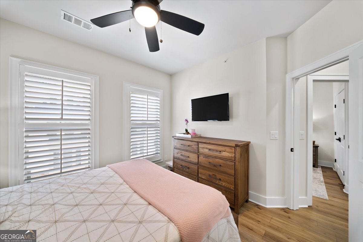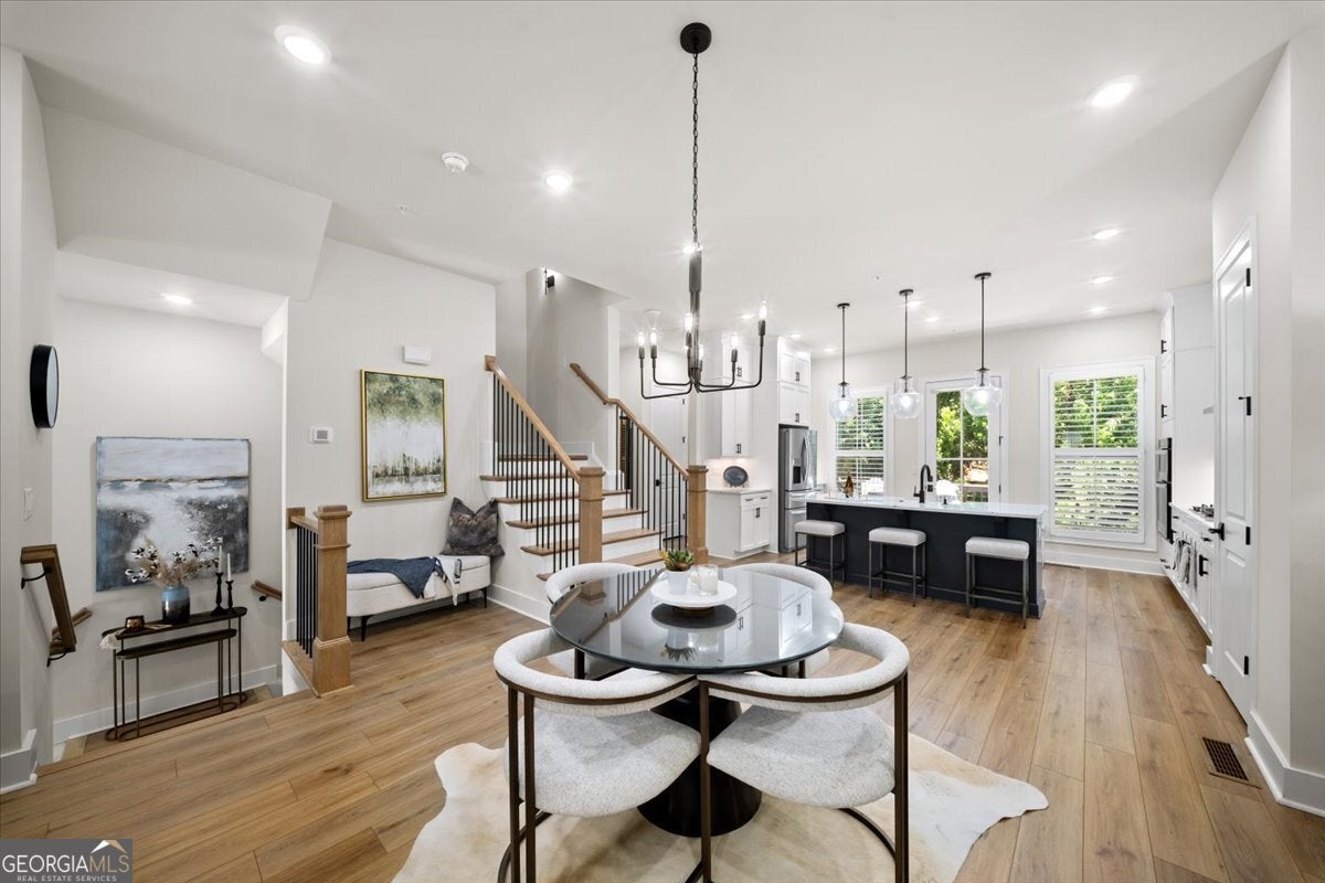 More than just a home-this is a lifestyle upgrade. Welcome to a stunning three-story townhome where modern luxury meets an unbeatable outdoor lifestyle, just a short, scenic stroll (less than 3/4 mile) from the charm and energy of historic downtown Woodstock. Follow a picturesque, tree-lined path straight into the heart of the city and experience the perfect balance of nature, convenience, and vibrant community living. Step outside and immerse yourself in an active, amenity-rich environment designed for all ages. Enjoy access to yoga, pickleball, volleyball, disc golf, walking trails, a dog park, fitness stations, and courts for basketball and tennis. Explore a breathtaking 110-acre park featuring hiking and mountain biking trails, fishing, canoeing, kayaking, and even a youth/amateur inline roller hockey league. Spend your evenings at the nearby amphitheater, hosting free summer concerts and fitness classes-all easily accessible by golf cart for the ultimate lifestyle experience. Inside, the home is equally impressive-crafted with both elegance and everyday functionality in mind. A dramatic split staircase welcomes you to the expansive main level, where soaring 10-foot ceilings and walls of windows flood the space with natural light. The open-concept design creates an airy, sophisticated atmosphere, anchored by a sleek linear fireplace in the living room. At the heart of the home, the gourmet kitchen is designed to impress. Featuring an oversized island, premium stainless steel appliances, floor-to-ceiling soft-close cabinetry with custom drawer inserts, and a bespoke coffee bar, it's the perfect space for everything from quiet mornings to elevated entertaining. The entry level offers a flexible bonus suite-ideal for a private office, home gym, or guest retreat. The spacious two-car garage is thoughtfully equipped with a smart opener, electric vehicle charger, and additional storage. Smart living is seamlessly integrated throughout, including Wi-Fi thermostats, an instant hot water recirculation system, central vacuum system for effortless cleaning, smart door lock, and video doorbell. Upstairs, retreat to the oversized primary suite-your private sanctuary-featuring a generous walk-in closet and a spa-inspired bath with dual vanities and a large walk-in shower. Additional bedrooms are equally well-appointed with ample space and walk-in closets. Outdoor living is just as inviting, with a private deck off the kitchen and a covered, fenced patio below-perfect for relaxing evenings or entertaining guests with ease. This is more than a home-it's where comfort, style, and an active lifestyle come together in perfect harmony.