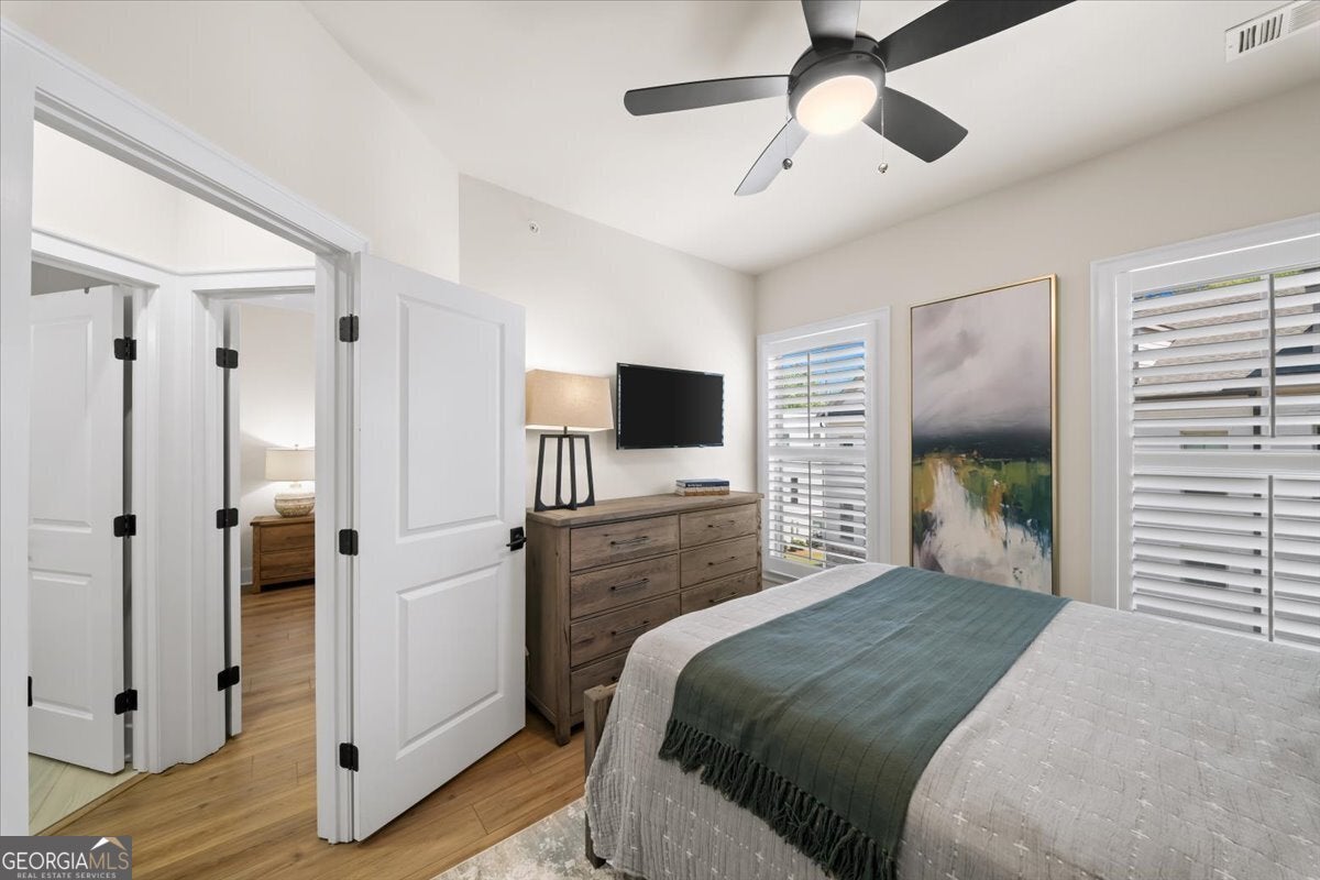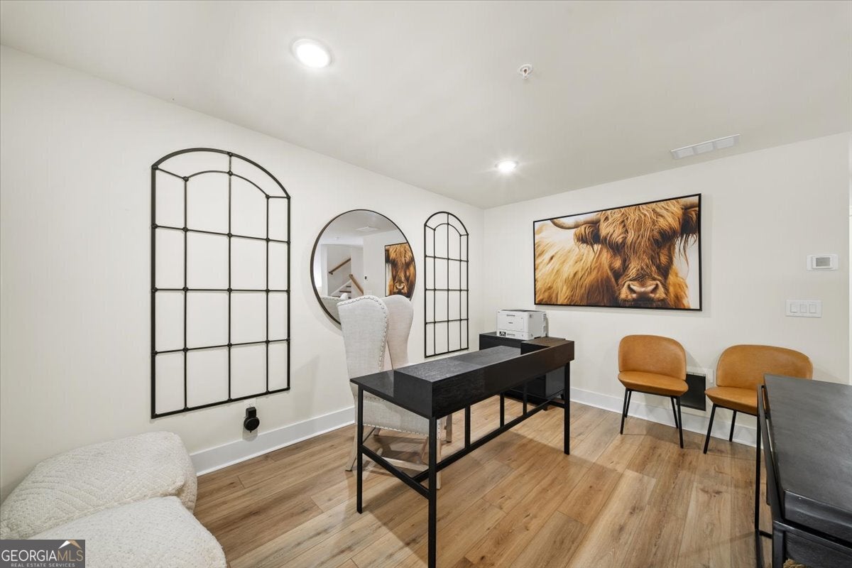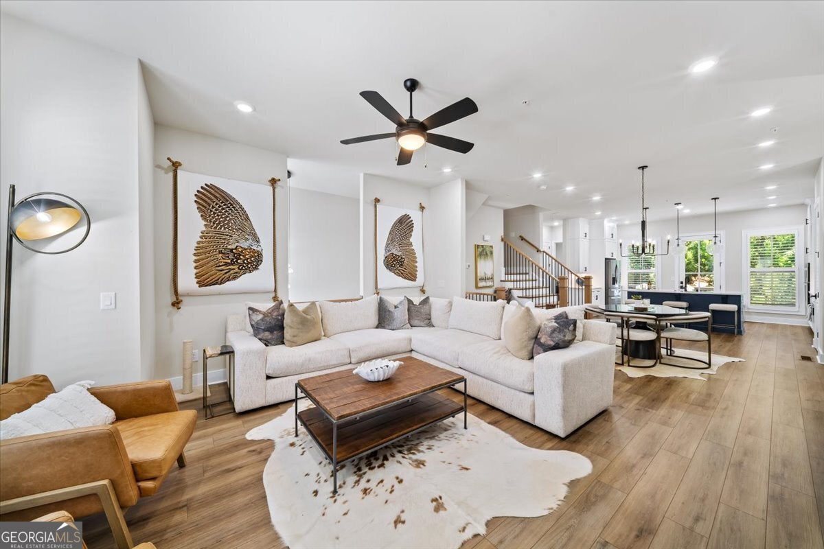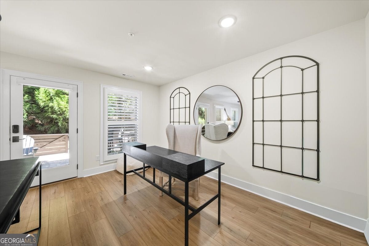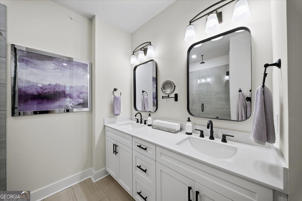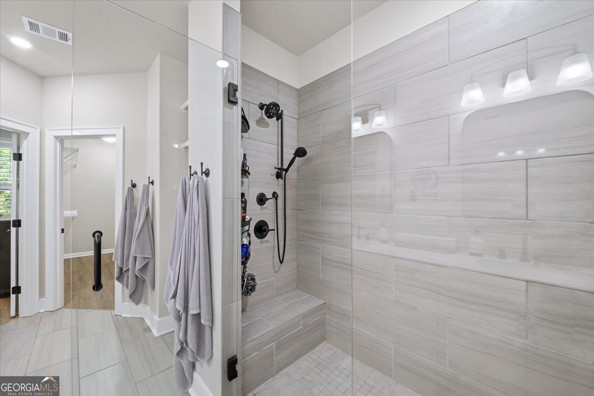 More than just a home-this is a lifestyle upgrade. Welcome to a stunning three-story townhome where modern luxury meets an unbeatable outdoor lifestyle, just a short, scenic stroll (less than 3/4 mile) from the charm and energy of historic downtown Woodstock. Follow a picturesque, tree-lined path straight into the heart of the city and experience the perfect balance of nature, convenience, and vibrant community living. Step outside and immerse yourself in an active, amenity-rich environment designed for all ages. Enjoy access to yoga, pickleball, volleyball, disc golf, walking trails, a dog park, fitness stations, and courts for basketball and tennis. Explore a breathtaking 110-acre park featuring hiking and mountain biking trails, fishing, canoeing, kayaking, and even a youth/amateur inline roller hockey league. Spend your evenings at the nearby amphitheater, hosting free summer concerts and fitness classes-all easily accessible by golf cart for the ultimate lifestyle experience. Inside, the home is equally impressive-crafted with both elegance and everyday functionality in mind. A dramatic split staircase welcomes you to the expansive main level, where soaring 10-foot ceilings and walls of windows flood the space with natural light. The open-concept design creates an airy, sophisticated atmosphere, anchored by a sleek linear fireplace in the living room. At the heart of the home, the gourmet kitchen is designed to impress. Featuring an oversized island, premium stainless steel appliances, floor-to-ceiling soft-close cabinetry with custom drawer inserts, and a bespoke coffee bar, it's the perfect space for everything from quiet mornings to elevated entertaining. The entry level offers a flexible bonus suite-ideal for a private office, home gym, or guest retreat. The spacious two-car garage is thoughtfully equipped with a smart opener, electric vehicle charger, and additional storage. Smart living is seamlessly integrated throughout, including Wi-Fi thermostats, an instant hot water recirculation system, central vacuum system for effortless cleaning, smart door lock, and video doorbell. Upstairs, retreat to the oversized primary suite-your private sanctuary-featuring a generous walk-in closet and a spa-inspired bath with dual vanities and a large walk-in shower. Additional bedrooms are equally well-appointed with ample space and walk-in closets. Outdoor living is just as inviting, with a private deck off the kitchen and a covered, fenced patio below-perfect for relaxing evenings or entertaining guests with ease. This is more than a home-it's where comfort, style, and an active lifestyle come together in perfect harmony.