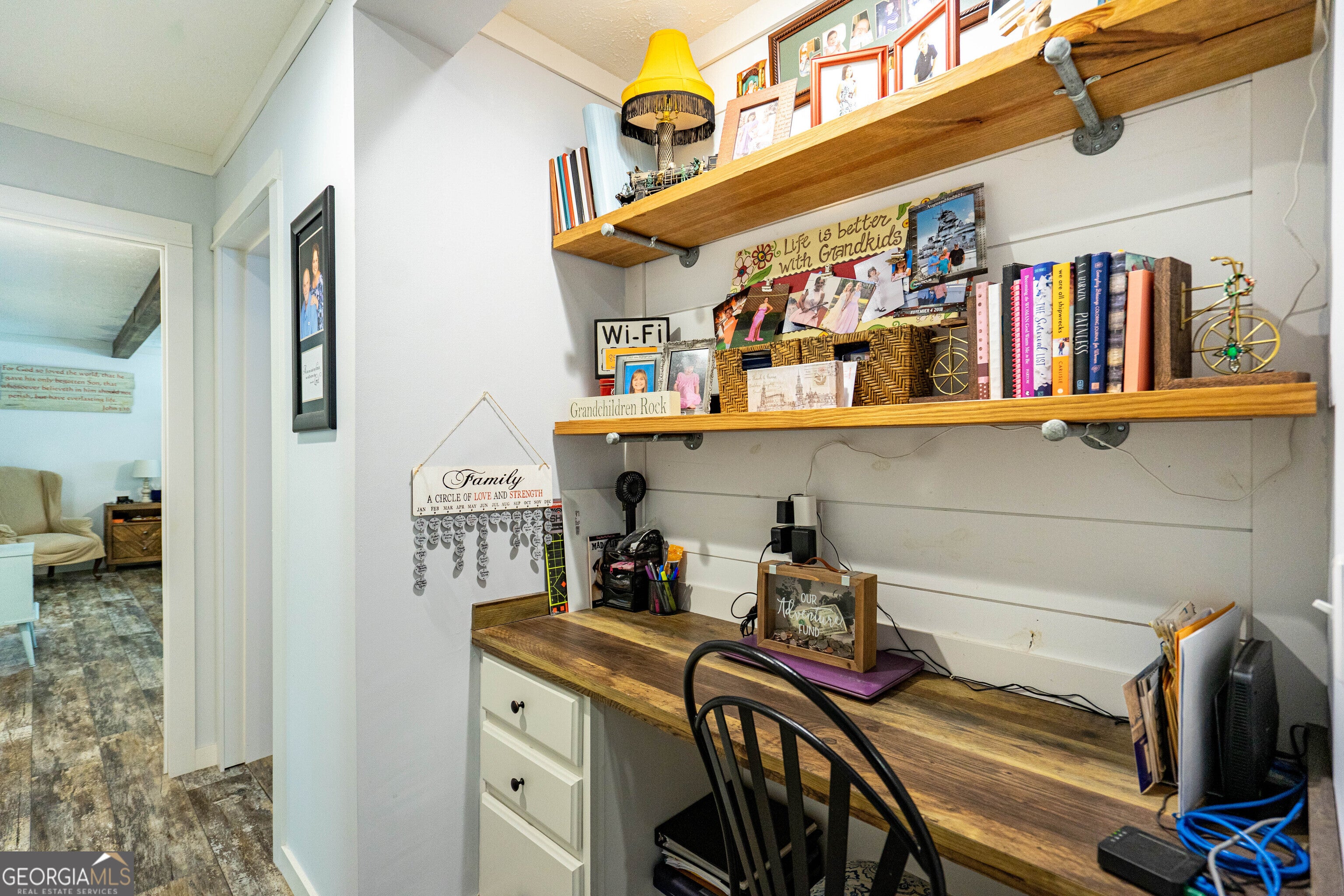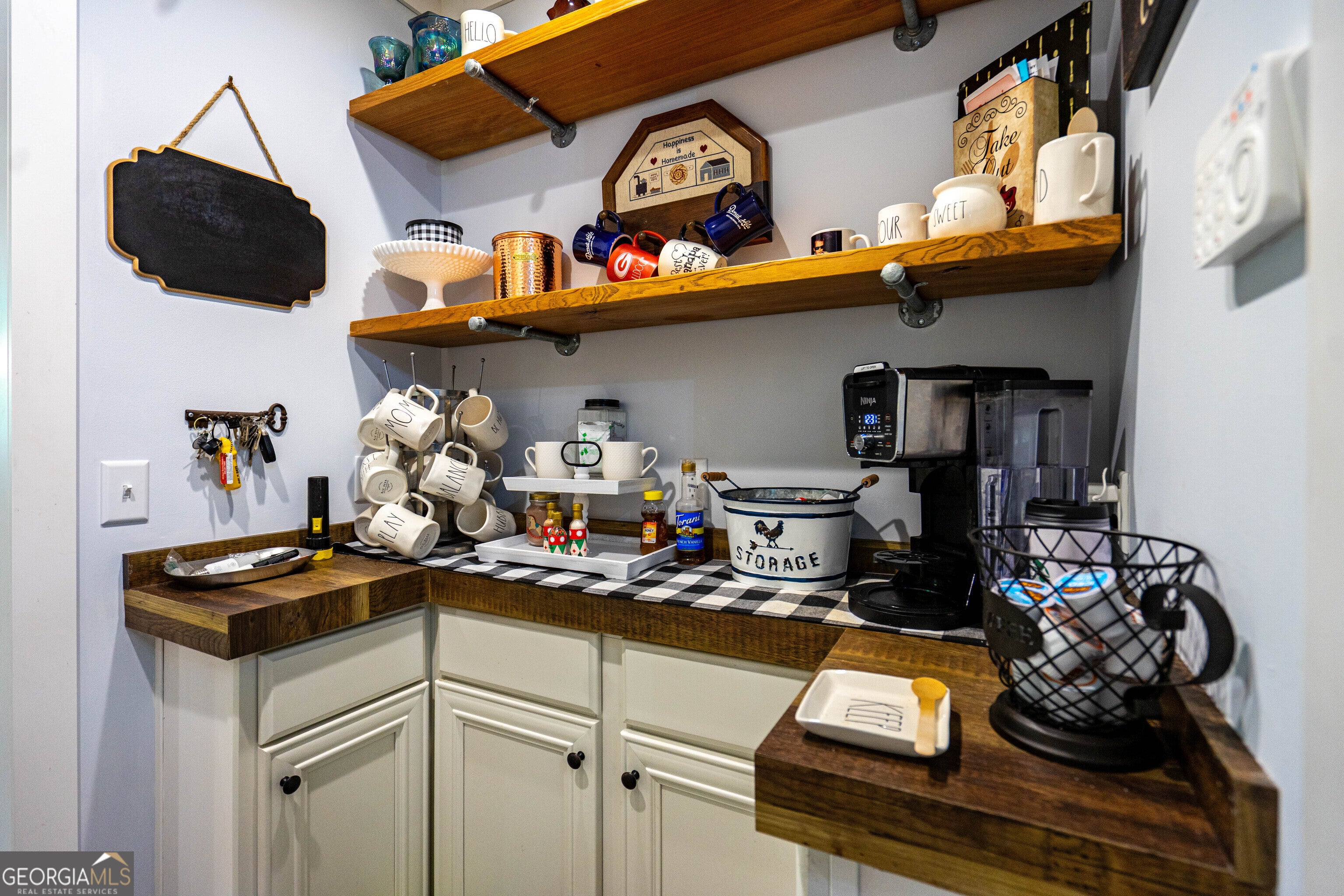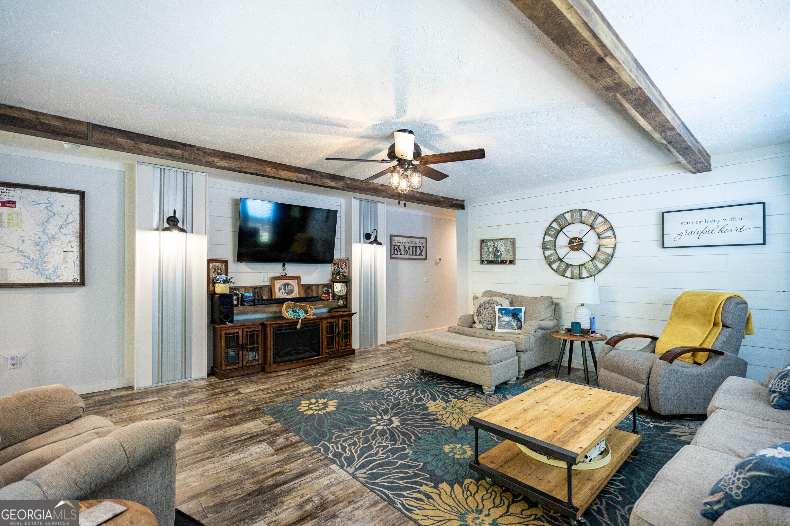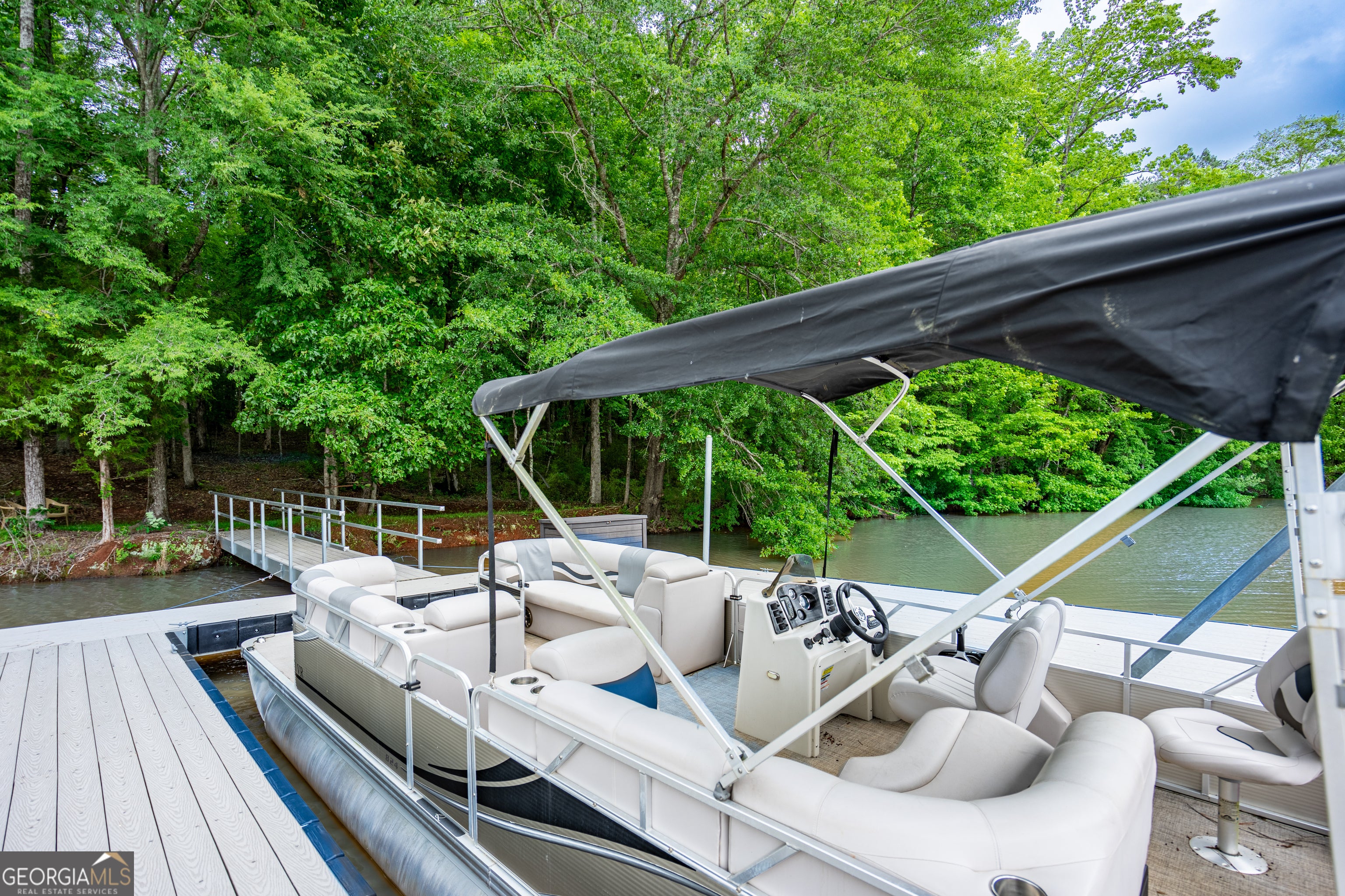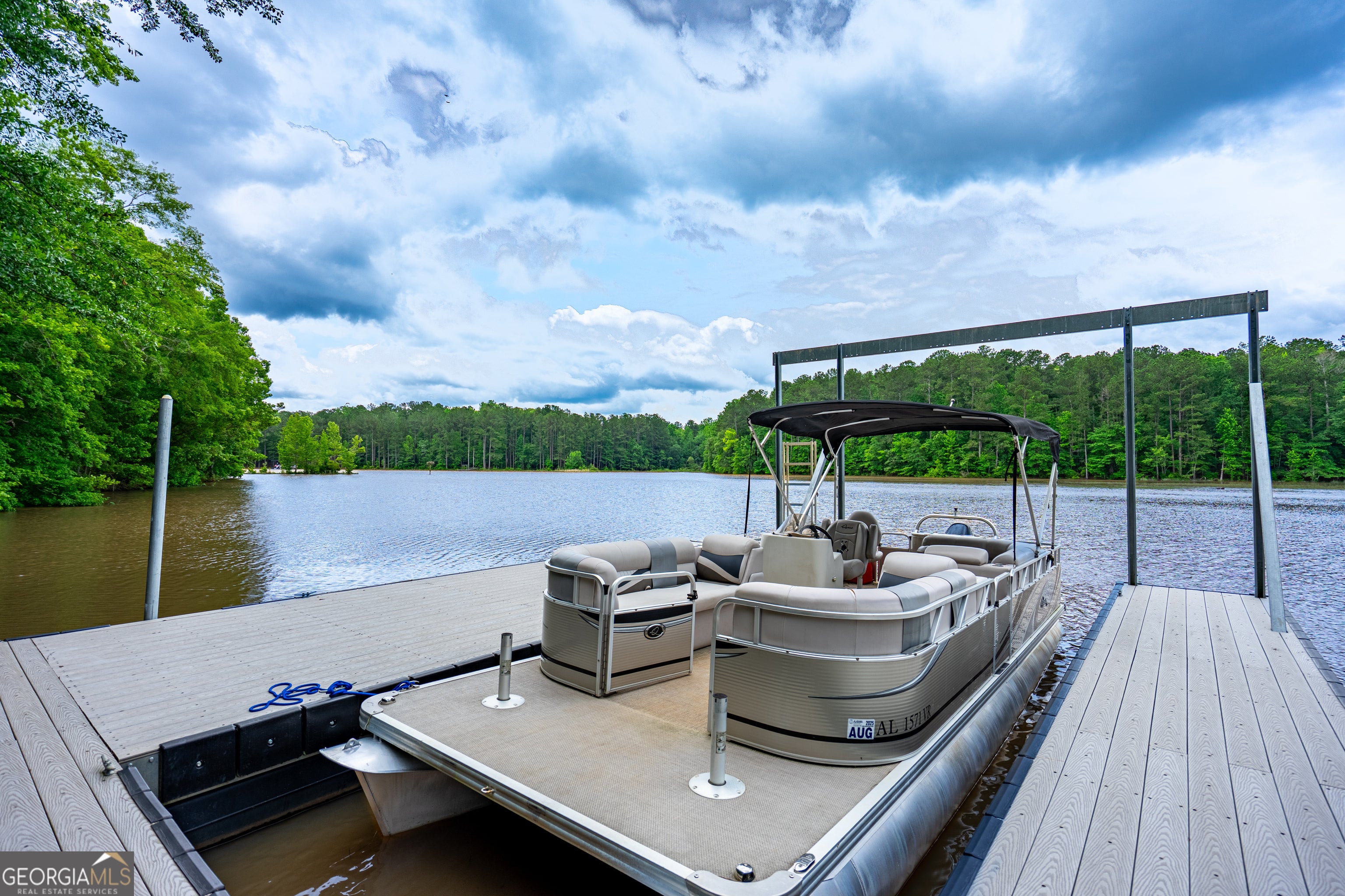 What a Beautiful Lake Home with a Brand-New Dock! Tucked away at the end of Brandon Cove in a quiet cul-de-sac, this 3-bedroom, 2-bath retreat is everything you imagine a lake house should be. From the moment you drive up, the eye-catching curb appeal sets the tone. A wooden walkway with nautical-style posts and rope leads to the covered front porch, welcoming you with that unmistakable lake house feel. Step inside and you will be surprised by the thoughtful touches throughout. The spacious laundry/mudroom includes custom shelving above the washer and dryer. Next, a dedicated coffee bar/butler's pantry provides the perfect spot for your morning ritual, complete with cabinets, floating shelves, and plenty of storage for snacks and drinks. The oversized kitchen is truly a showpiece. With its massive island and breakfast bar, endless cabinetry and counter space, and a view into both the dining room and great room, it's designed for gathering. Triple windows over the farmhouse sink flood the space with natural light, while shiplap walls, butcher block counters, a coffered ceiling, and a custom vent hood add character. Stainless steel appliances and farmhouse lighting tie the space together, and a French door opens onto the wrap-around covered porch for effortless indoor-outdoor living. The dining room, framed with two walls of double windows, feels bright and inviting. The great room is equally impressive, offering space for entertaining or relaxing with family. Triple windows frame a view of the lake, while a removeable entertainment center with an electric fireplace adds warmth and charm. Exposed beams and a shiplap accent wall create a rustic-luxe atmosphere, and another door opens to the wrap-around porch. Down the hall, you'll find a built-in desk, two guest bedrooms, and a guest bath featuring a built-in line closet, oversized vanity, and a 60" Vanderbilt tub/shower combo. The owner's suite feels like a private retreat. Generous in size, with large windows, exposed beams, and a spacious walk-in closet, it leads through double sliding barn doors into a spa-inspired bath. Here, an oversized 48x72 walk-in tile shower, soaking tub set before picture widows, dual vessel sinks, and built-in linen storage create a space designed for pure relaxation. Outdoors is where lake life truly shines. A 48x12 deck stretches across the back of the home, seamlessly connecting with the wrap-around covered porch and offering ample space for grilling, entertaining, or simply soaking up the lake views. It's even wired for a hot tub. Gather around the firepit on cool nights or head to the composite dock-built to last for years of enjoyment. The dock accommodates a pontoon, fishing boat, and jet skis, with a water depth of about six feet at full pool (April-October). Additional perks include multiple storage buildings in both the front and back yard, giving you plenty of room for tools, toys, and lake gear. Though technically a manufactured home, this one was custom designed with all sheetrock walls, a permanent block foundation, and the solid feel of a site-built home. Ideally located just minutes from LaGrange, Roanoke, Valley and a short drive to Auburn, this home offers the best of lake life-peace, fun, and relaxation-ready for you to enjoy for many summers and beyond. SUMMER IS ALMOST HERE... TIME FOR YOU TO GET A LAKEHOUSE TO ENJOY!!