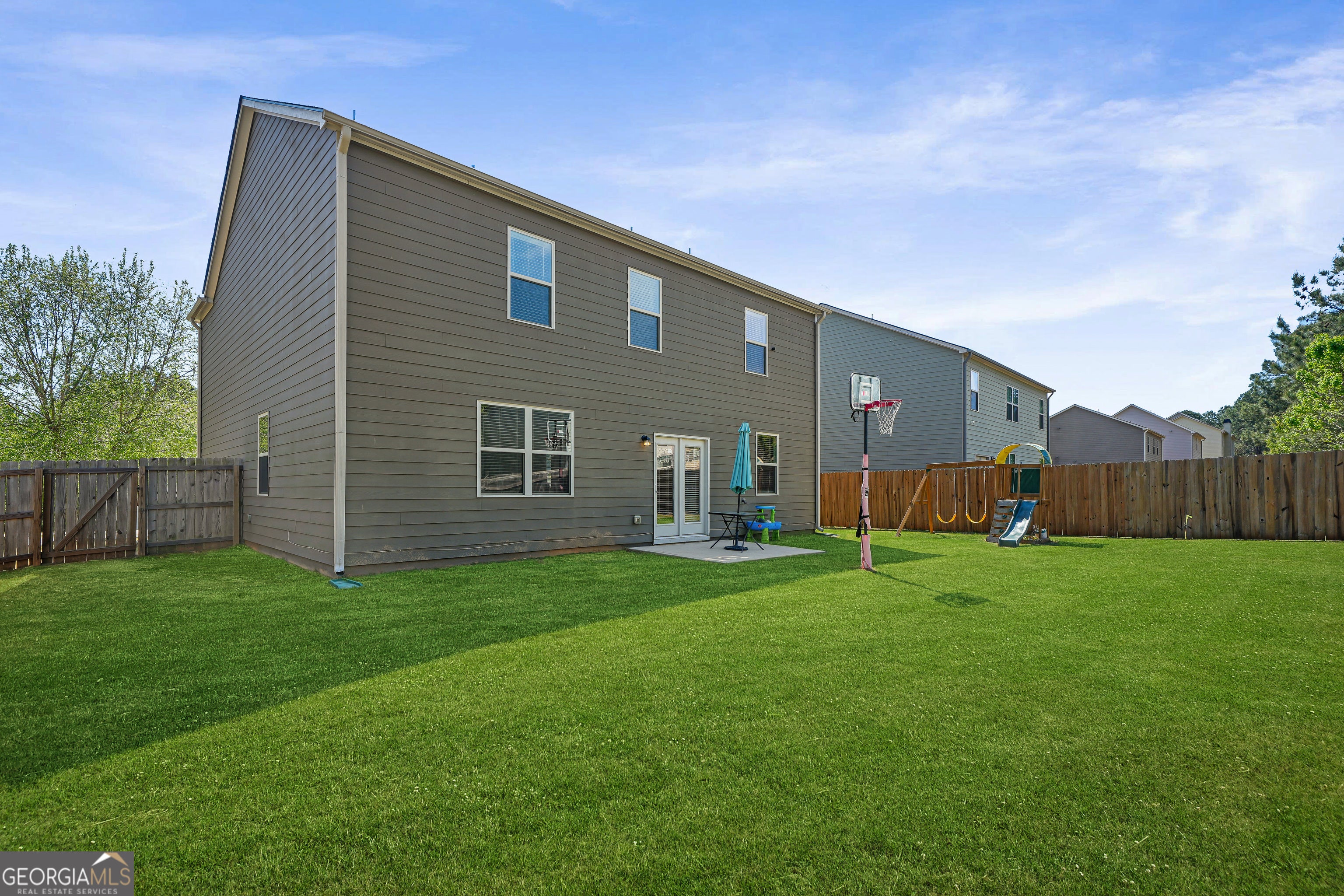 Welcome home to the sought-after Dodson Lake community in Fairburn, Georgia-where comfort, space, and everyday convenience come together beautifully. This well-maintained, freshly interior painted, 4-bedroom, 2.5-bath home, built in 2018, offers 2,490 square feet, perfect for your family. Enjoy the formal living room and family room natural light. The 2-story layout provides both functionality and flow. The formal living room offers a versatile space for entertaining or work from home office space, and the inviting family room is complete with a romantic fireplace that opens seamlessly to the kitchen. The kitchen is truly the heart of the home, featuring a spacious island, walk-in pantry, and cozy breakfast area. Tucked away, the hidden staircase adds a unique touch of charm and privacy. Upstairs, retreat to the expansive owner's suite designed with comfort in mind. Enjoy a massive walk-in closet, a spa-like bathroom with a separate soaking tub and glass-enclosed shower, and a private water closet for added convenience. Step outside to a rear patio ready for relaxing evenings, weekend gatherings, or fun family time. With a spacious 2-car garage and driveway, a community that features sidewalks and street lights, Dodson Lake offers both comfort and a true neighborhood feel-all for a low HOA of just $330 annually. Location is everything, and this home delivers. Just 3 miles from Downtown Fairburn's restaurants and Landmark Christian Academy, and less than 20 minutes from Hartsf
