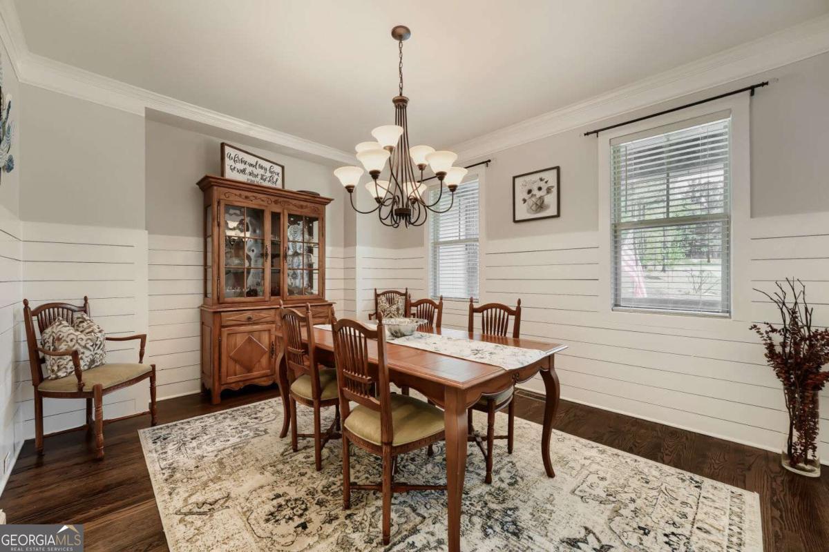 Discover a home where every detail shines. Situated on nearly one acre in a quiet, sought after neighborhood! From the inviting rocking chair front porch, you'll step into a residence where every detail has been thoughtfully curated. The main level showcases stunning hardwood floors, a soaring coffered ceiling, and a dramatic stacked stone fireplace with gas logs anchoring the spacious family room with coffered ceilings. The owner's suite on the main level is a true retreat, highlighted by cedar beams. The updated spa-like bath is complete with a frameless shower, granite countertops, and dual vanities. The kitchen is both functional and beautiful, now enhanced with a new stainless steel farmhouse sink, new dishwasher, and updated countertops and backsplash, all flowing seamlessly into the family room-perfect for entertaining. Shiplap accents elevate the formal dining room and powder room with modern farmhouse charm. Upstairs, you'll find new LVP flooring throughout, a spacious guest suite with a full bath, and a media room that could easily be converted into a fifth bedroom. Additional recent improvements include a NEW ROOF, a pergola added to the private deck, custom blinds, new hardwood floors in the Jack-and-Jill bedrooms on the main level, landscaping, an epoxied garage floor, a sealed basement for water intrusion prevention, and a newly added outdoor shed. The unfinished daylight basement offers endless possibilities and includes an outlet for a generator. Outdoor living is just as impressive with a large deck overlooking a fully fenced backyard, complete with an irrigation system and a 220 outlet ready for a future hot tub. With a three-car garage, additional parking pad, abundant storage, and access to neighborhood amenities including a swimming pool and clubhouse, this home truly has it all. Don't miss the opportunity to own a property where quality, comfort, and thoughtful upgrades come together seamlessly!