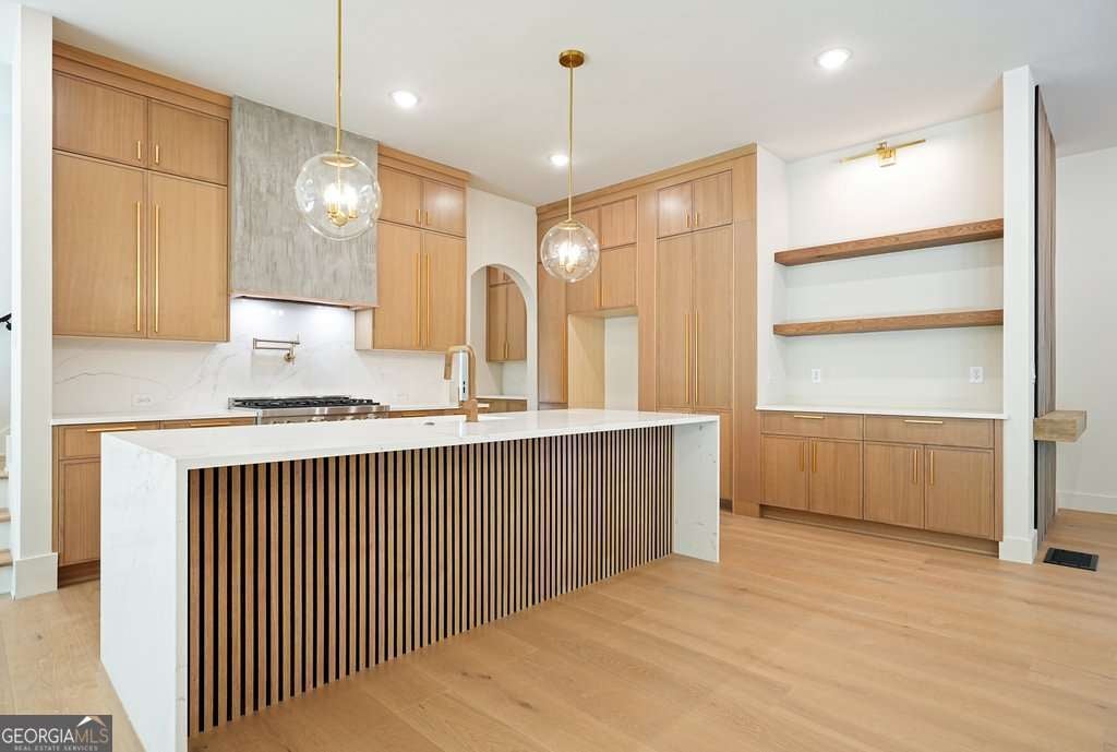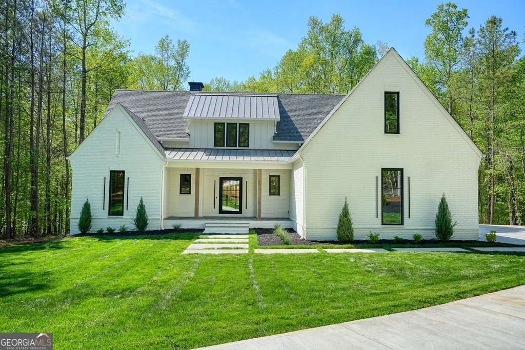 Exceptional new construction on 2.02 private acres blending modern design with thoughtful luxury with no HOA. Enter this gorgeous space through the striking, custom, 5x8 foot custom steel front door. Immediately feel the open concept layout with thoughtful appointments throughout. The chef's kitchen is a true showpiece with high-end Z-line stainless appliances featuring dual fuel range, quartz countertops with waterfall island, a striking concrete vent hood, and a hidden scullery complete with second sink, dishwasher, and microwave, plus a wine fridge, and expansive walk-in pantry with custom shelving. An additional butler's pantry adds seamless flow for entertaining. Main-level living includes 2 bedrooms and 2 full baths, highlighted by a stunning owner's suite featuring a spa-inspired wet room with soaking tub flanked by dual showers, dual vanities, and a custom walk-in closet with built-ins and pull-down racks. The woodburning, fireside great room opens to a covered deck through 10x8 foot accordion-style glass doors, overlooking a flat, private backyard. Vaulted dining room with beams, and an oversized mudroom with custom storage add both style and function, stunning 9" wide and 5/8" thick white oak hardwoods floors grace entire main and upstairs except second story bedrooms. Upstairs offers 3 spacious bedrooms, 2 full baths, and an enormous, vaulted, bonus room over the 3-car garage, plus a second laundry room. Full unfinished basement with concrete safe room provides endless potential. Custom lighting and upgrades throughout. This house boasts all Hardie Plank exterior, foam insulation, 2 Trane HVAC systems, built-in pest control system, stone patio, all brick front, fiber reinforced concrete driveway and custom sidewalk, Liftmaster my Q garage door with camera system, ring doorbell, oversized windows throughout, and upgraded landscaping including trees and fescue sod. All bathrooms have custom vanities and tile to the ceiling. Upgraded carpet in bedrooms upstairs. Enjoy a private, estate-like setting just minutes from everyday conveniences and top-rated schools-the perfect balance of seclusion and accessibility.