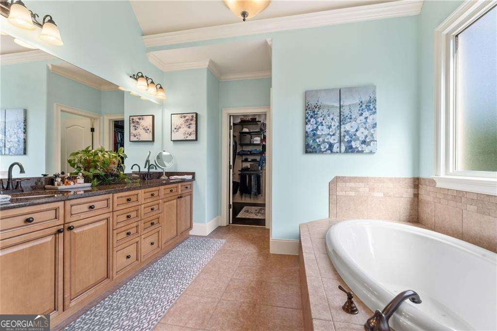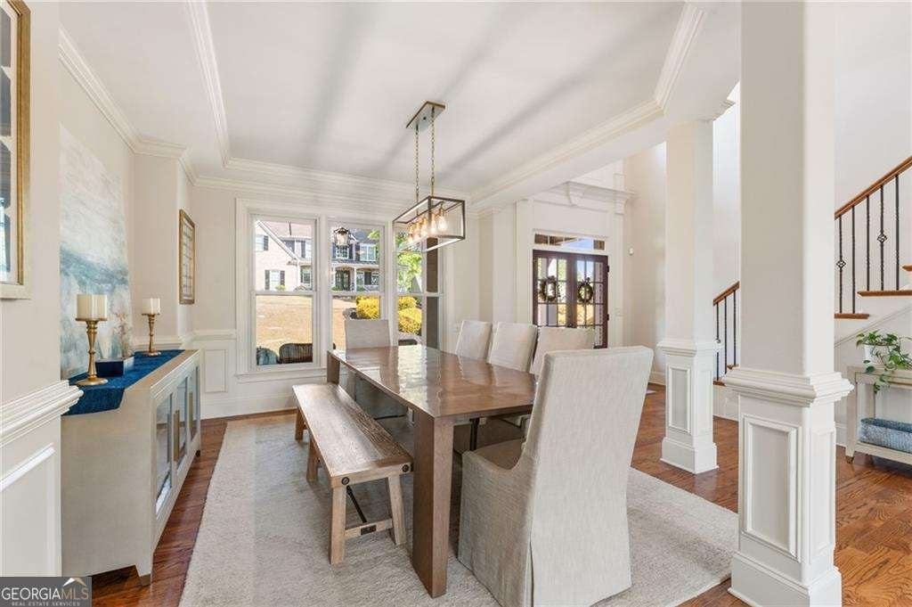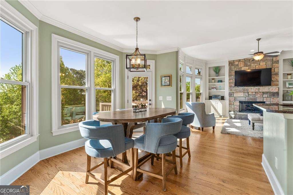 From the moment you step inside, the soaring two-story foyer and warm hardwood floors set the tone, bright, open, and effortlessly inviting. This is a home designed to be lived in and loved, where everyday moments and large gatherings coexist beautifully. The layout is what truly sets this home apart. With expansive living spaces, high ceilings, and a seamless flow, hosting 50+ guests has never felt crowded. The formal dining room is ready for everything from holiday dinners to casual evenings with friends, while the great room offers elevated ceilings, abundant natural light, and beautiful views of the private, park-like backyard and pool. Just off the kitchen, the keeping room with its stacked stone fireplace creates a warm, inviting space that quickly becomes a favorite, perfect for slow mornings with coffee and relaxed evenings by the fire. The kitchen blends beauty and function with stone countertops, stainless steel appliances, and a light-filled breakfast area overlooking the backyard. It's designed for real life, whether that's a quick weeknight meal or entertaining a full house with ease. The main-level primary suite offers the retreat today's buyers are searching for, spacious, private, and complete with a spa-like bath and a custom-designed walk-in closet. Upstairs, four additional bedrooms plus upstairs media, play space or home office that provides flexibility for family, guests, or work-from-home needs, with one Jack-and-Jill bath and an additional en suite bath for added comfort and convenience. The unfinished terrace level is already stubbed for a bath and ready for your vision, whether it's a home gym, media room, golf simulator, or guest suite. Step outside and the lifestyle truly unfolds. The backyard has been a true sanctuary, private, beautifully landscaped, and thoughtfully designed with irrigation, extensive lighting, and a heated saltwater pool that transforms from a peaceful daytime retreat into a stunning evening entertaining space. Tucked toward the back of the neighborhood with minimal traffic, the setting offers exceptional privacy paired with a phenomenal view. Beyond the beauty, the investment in this home is undeniable. A full roof replacement with a transferable warranty, 61 new windows, upgraded HVAC systems, a new water heater, whole-home water monitoring system, EV charging capability, custom closet installations, and a fully enhanced landscape and outdoor living environment provide peace of mind for years to come. A three-car garage completes the home. Located in BridgeMill, residents enjoy a true lifestyle community with access to a championship 18-hole golf course, a two-acre aquatic center, tennis and pickleball courts, a fitness center, on-site dining, and a vibrant social calendar, all just minutes from Lake Allatoona, downtown Canton, Woodstock, and easy access to I-575. This is more than a home. It's where space, privacy, and lifestyle come together in a way that simply feels right.