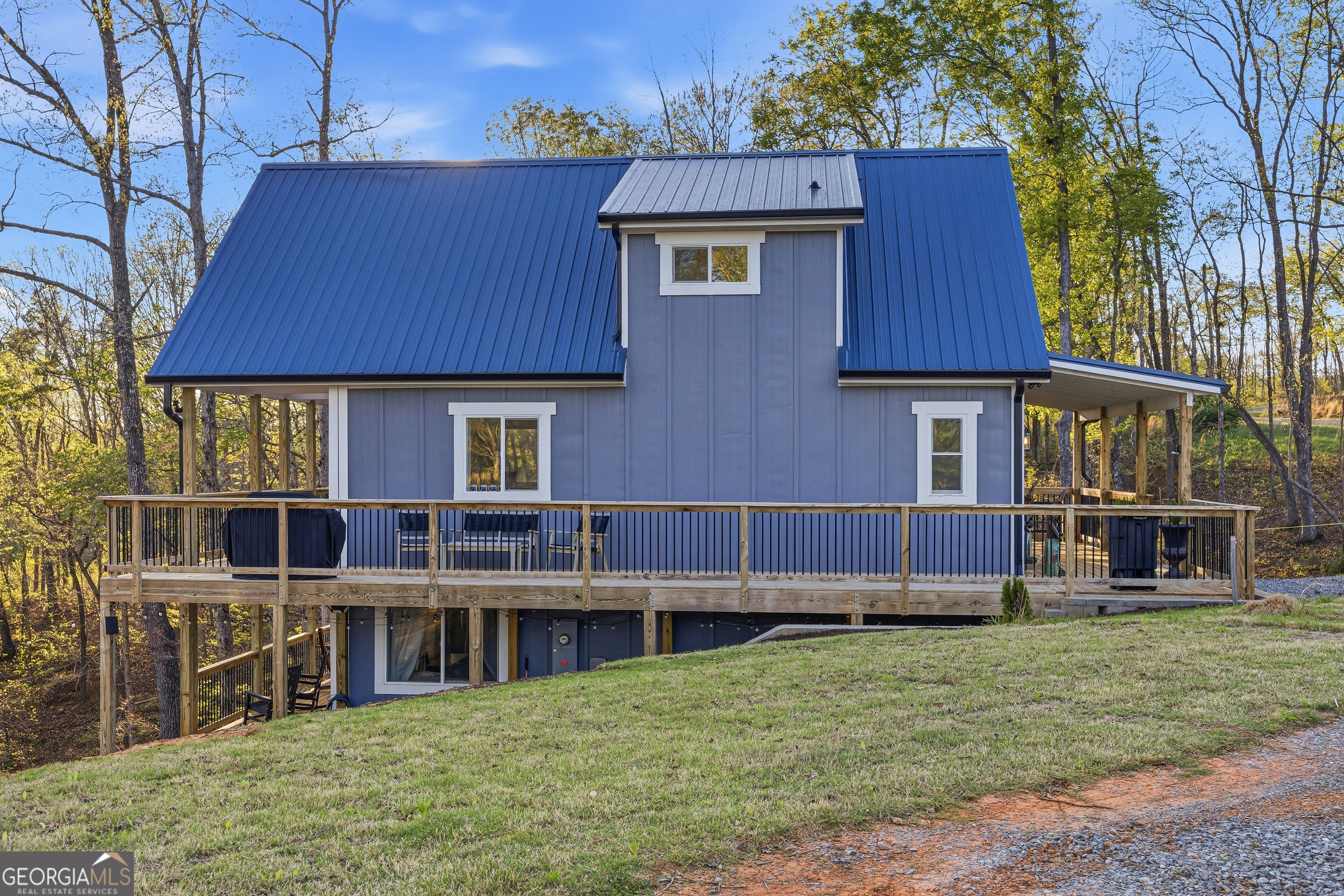 84 Ridge Line Trail | Ellijay, GA Modern Mountain Living on 1.55 Acres with Scenic Views & Privacy Welcome to 84 Ridge Line Trail, a thoughtfully designed 2024 modern mountain retreat set on 1.55 acres of private, wooded landscape within the gated community of Jake's Landing Overlook. Surrounded by nature and just a short walk to Carters Lake, this home offers a peaceful balance of comfort, design, and everyday escape. Built with double-engineered Smart Steel SIPs technology, the home reflects a commitment to energy efficiency, durability, and sustainable building practices-an added benefit for both long-term ownership and potential tax advantages. Inside, you're welcomed into the main level, where an open-concept layout brings together the living room with electric fireplace, dining area, and chef's kitchen-complete with quartz countertops, stainless steel appliances, and a central island. Vaulted ceilings and expansive windows invite in natural light while framing serene mountain views. A full bathroom on this level adds convenience for guests and everyday living. The upper level is dedicated to the primary suite, offering a private retreat with a floor-to-ceiling tiled walk-in shower and elevated finishes designed for comfort and relaxation. The lower level expands the home's versatility, currently offering additional living space, game room, laundry area, office/workspace, gym, storage, and an additional room-ideal for hosting guests, working remotely, or creating separate living zones. There is also infrastructure in place for heating and cooling, providing an opportunity to further enhance this level over time. Outdoor living is a true highlight of the home. Enjoy two levels of covered decking, perfect for both quiet mornings and relaxed evenings, along with: Private jacuzzi hot tub Fire pit for gathering under the stars Covered front porch entry Seamless indoor/outdoor dining flow Whether you're enjoying the natural surroundings, entertaining guests, or simply unwinding, the setting offers both privacy and connection to nature. Located just minutes from Carters Lake, Ridgeway Recreation Area, and Tumbling Waters Trail, and approximately 20 minutes to downtown Ellijay, this property provides access to hiking, boating, vineyards, and local dining-while still offering a quiet retreat away from it all. A well-designed mountain home offering flexibility, comfort, and the opportunity to enjoy modern living in a natural setting.