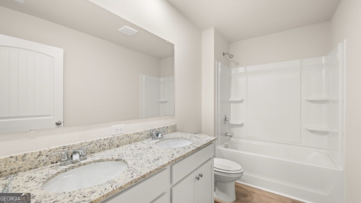 Welcome to 8177 Elkhorn Drive. This homesite features the stunning Flora plan in Fairburn, GA at our welcoming Oaks at Cedar Grove community. This plan is the perfect amount of space for any family, with 4 bedrooms and 2.5 bathrooms in 2,176 square feet. Step off the large front porch into the open foyer area, with a coat closet and powder room immediately to the right. A large great room greets you from the foyer and flows seamlessly into the kitchen. This open concept allows you to be cooking in dinner in the kitchen while still conversating with family and friends gathered in the living area. The kitchen boasts beautifully crafted cabinets, granite countertops, and all stainless-steel appliances. A quick walk up the staircase from the great room, unfolds the second floor with the laundry room immediately to the left. The primary suite is right off the laundry room, allowing easy access for laundry day. In the primary suite, homeowners can enjoy the walk-in closet, dual vanity, and separate soaking tub and walk-in shower. All 3 additional bedrooms line the other side of the second floor with a dual vanity bathroom at the end of the hallway for easy access. Does 8177 Elkhorn Drive sound like your future dream home? Then contact us at Oaks at Cedar Grove to schedule a tour of your future home in Fairburn, GA.