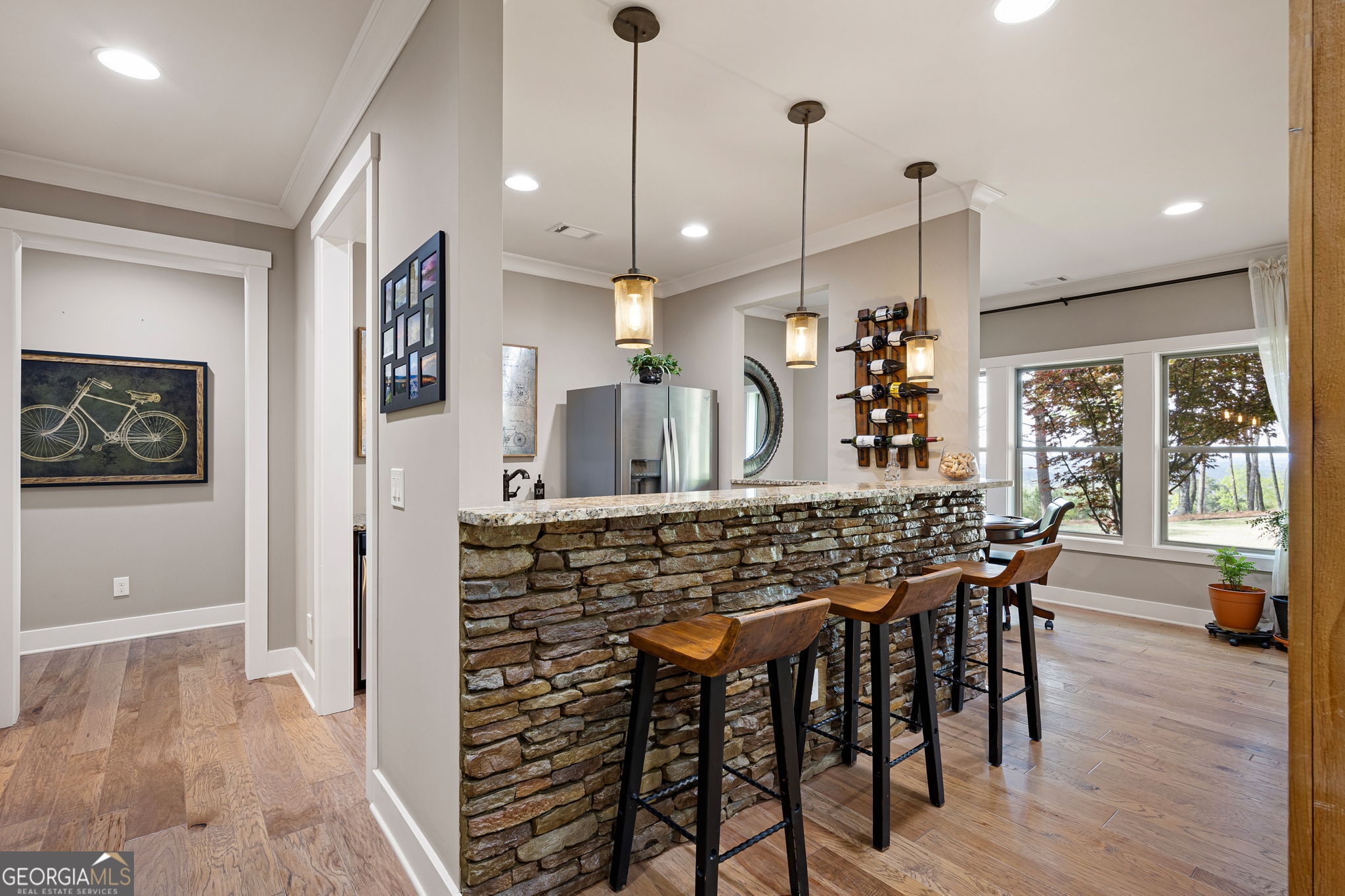 Previous Model for Laurel Canyon-Horizon with Lots of Extras! Main Level Offers Lovely 5 Inch Hardwood Flooring Throughout Including an Executive Office with French Doors, Brick Accent Wall, Recessed Lighting, Large Closets and Bright Windows. 12+ Seating Dining Room with Beautiful Trey Coffered Ceiling and Plantation Shutters. Recently Renovated (2026) Dream Chef's Kitchen with White Custom Cabinetry to Ceiling, Quiet Close Cabinets and Drawers, Lazy Susan, Beautiful Quartz Countertop Wood Island with Tons of Additional Storage, Huge Walk-in Pantry and So Much More! ALL Appliances are Stainless Steel and REMAIN. Enjoy Relaxing in the Living Room with Built-in Cabinets, Vertical Accent Walls Framing the Stacked Stone Fireplace, Wood Beam Mantle, and TV Above Fireplace Remains! The Luxurious Primary Suite is Located on the Main with Sitting Area, HUGE Walk-in Closet, Double Trey Ceiling and Spa-like Bath. Enclosed Deck Runs FULL Length of Home Modified to Offer EZBreeze Windows with Screens, Stacked Stone Fireplace with Gas Starter/Gas Logs, Wood Beam Mantle and Flip of Switch to Turn On. Second Floor Offers A "Zen Room" (Could Easily be Converted to a Bedroom by Installing Closet Doors Where Space is Provided), with Jack-n-Jill Full Bath Connected to One of the Upstairs Secondary Bedrooms. Loft Area with Accent Ceiling Beams and Direct Access to Attic Area Above Garage for EXTRA EASY ACCESS STORAGE! Terrace Level Offers Hardwood Flooring Throughout, TONS of Windows Offering ENDLESS Views, HUGE Open Area for Entertaining, Stacked Stone Wet Bar with Stainless Steel Refrigerator, Dishwasher, Ice-Maker, Granite Counter Tops, Double Sink and Eating Area-Currently Used as a Game Area and So Much More! Gorgeous Backyard with HUGE Covered Patio is an Outdoor Grill Masters Dream with NEVER USED Gas Grill Built into Granite Bar/Cooking Station with Stainless Steel Refrigerator and Trash Disposal Container. Extended Paver Patio with Firepit! So Many Extras-You Will Have to See to Believe! Fantastic Amenities Include Clubhouse with Fitness Room, Full Kitchen, Multiple Meeting Spaces, Gas Grill, Swimming Pool with Fountains, 6 Pickleball Courts and 2 Tennis Courts, Playground, Basketball Court, Tons of Clubs and Opportunities to be Social, Golf Cart Friendly Community, Adjacent to Fairways of Canton Public Golf Course.
