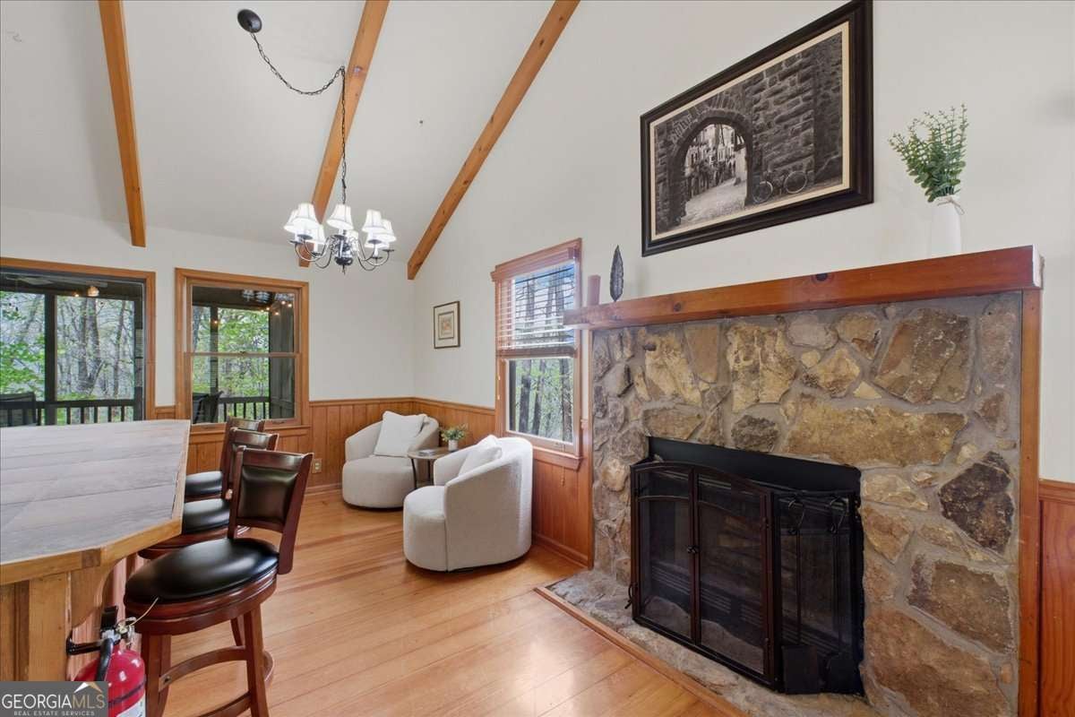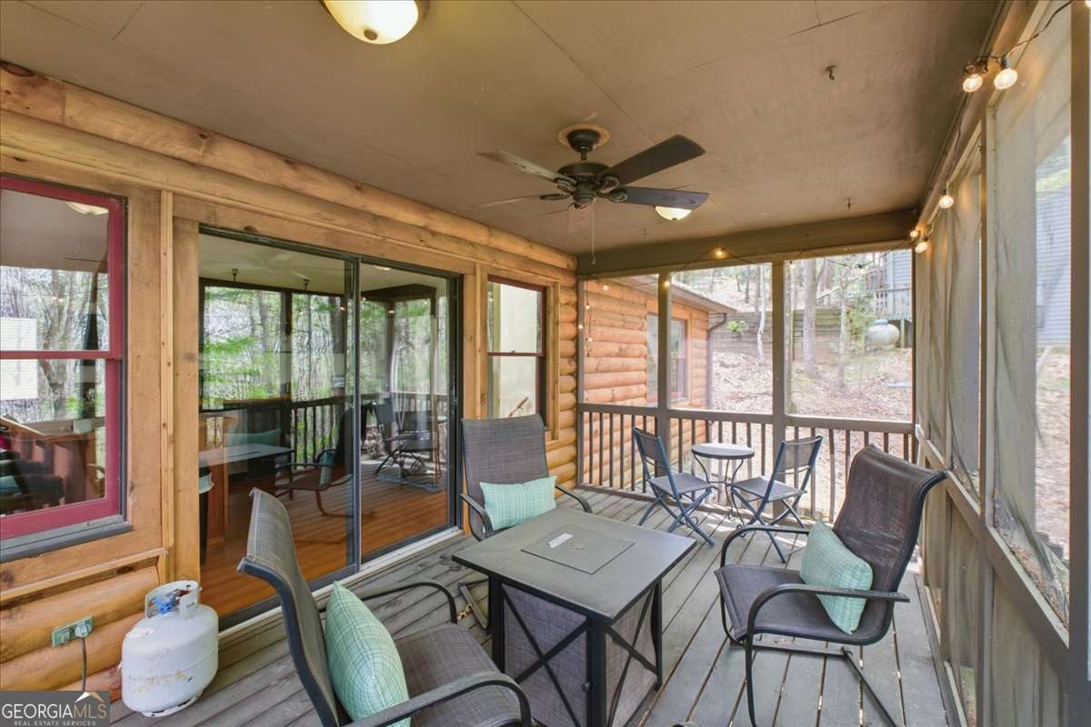 Move right in and start living your mountain dream in this delightful turnkey cabin! Experience the ultimate mountain lifestyle in this quintessential log cabin, perfectly tucked away in the gated Walnut Mountain community. This isn't just a home; it's a turnkey retreat featuring soaring vaulted beam ceilings, an open-concept floor plan, and cozy stone fireplace. Major recent upgrades include a new roof, new retaining wall, and a custom front walkway. Enjoy your privacy on the screened-in porch with peaceful, long-range wooded views. With a bedroom and full bath on each level, it's the ideal layout for guests who want separated sleeping spaces or a high-performing Short Term Rental. The storage/workshop space behind the garage is a huge bonus! Walk to the community lakes, pool, basketball/tennis courts, clubhouse, dog park and trails. Or take a short drive to historic downtown Ellijay, nearby orchards, vineyards and mountain hikes. Sis home has been well cared for and you have the security of knowing the home maintains pest, termite, and rodent warranties that are renewed annually. Experience the quiet of a mountain home that maintains a community feel. Schedule your tour today.