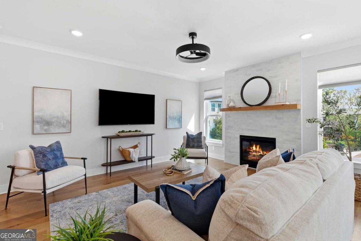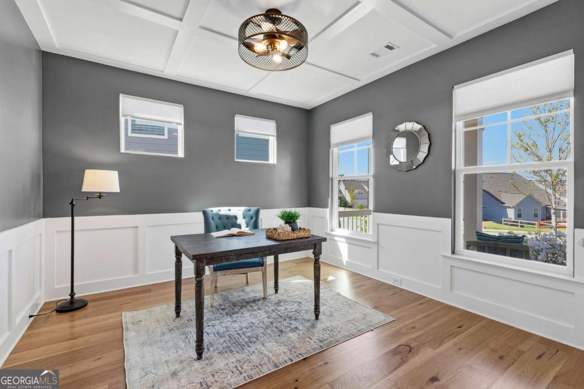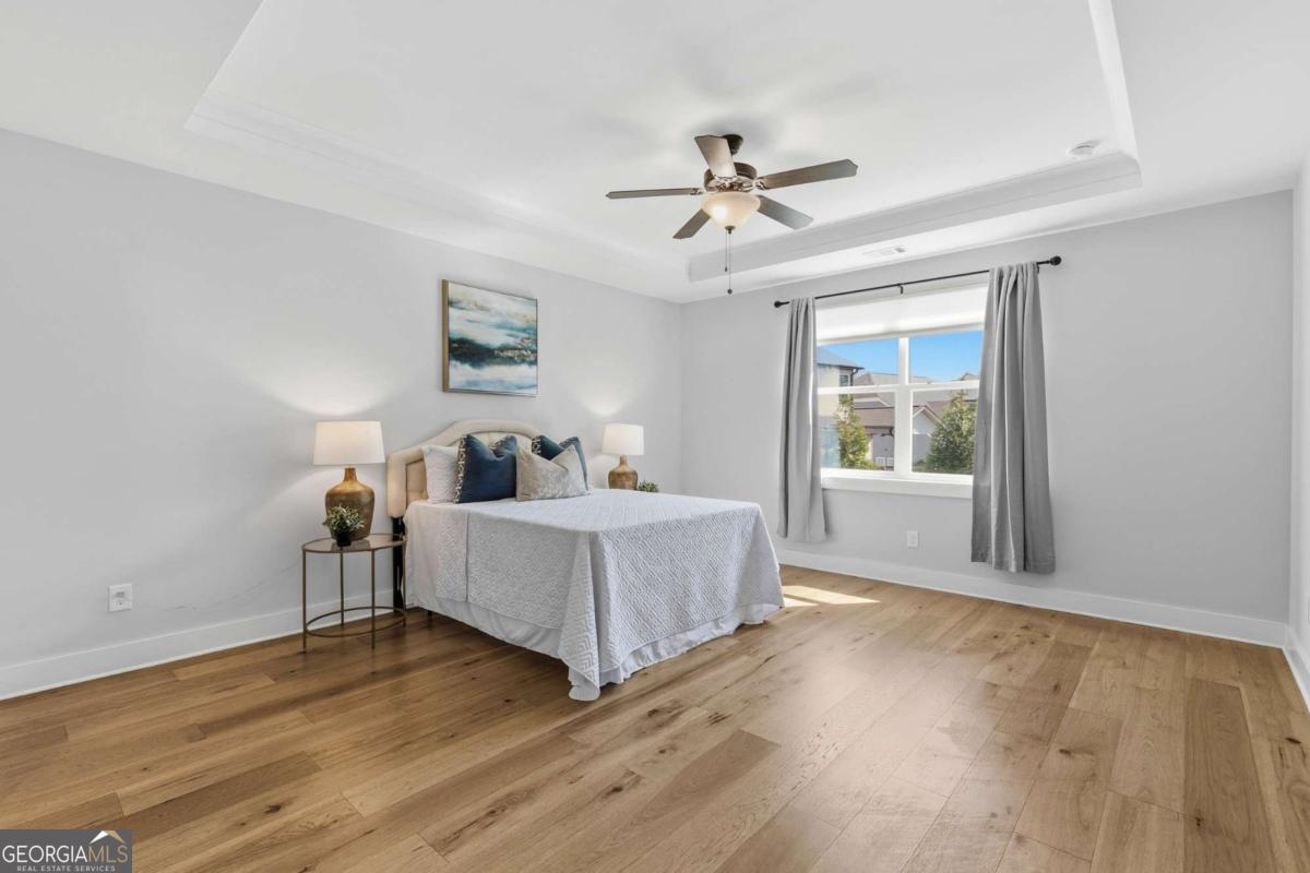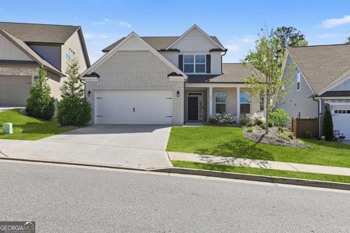 0PEN H0USE SUN. 4/19 FROM 2-4PM... Welcome to 203 Sunshower Ridge, a stunning newer construction home located in the desirable Sunrise Cove neighborhood of Great Sky, offering beautiful views of the reservoir and an exceptional blend of style, comfort, and convenience. Built in 2023, this thoughtfully designed home features nearly 2,800 square feet with 4 bedrooms and 3.5 bathrooms, including a highly sought-after primary suite on the main level. Step inside to an inviting open floor plan highlighted by rich pecan hardwood floors throughout the main living areas, a cozy fireplace in the family room, and an abundance of natural light. The spacious kitchen is the heart of the home, featuring Frigidaire Gallery stainless steel appliances, a gas cooktop, a large island ideal for gathering, and seamless flow into the dining area and living space. Just off the main living area, a dedicated office provides the perfect space for working from home or a quiet retreat. The dining area opens to an extended back patio overlooking the reservoir, creating a peaceful outdoor setting perfect for relaxing or entertaining. Enjoy additional outdoor living with a covered front porch and covered back patio. Upstairs, you will find generously sized secondary bedrooms, two full bathrooms, and a versatile media room offering additional living or entertainment space. New high-end carpet enhances the upper level, while updated light fixtures throughout the home add a modern touch. Additional features include a two-car garage, spacious bedrooms, and a well-designed layout that balances comfort and functionality. Ideally located just a short drive to I-575 and less than 10 minutes to Downtown Canton, The Mill on Etowah, and a variety of shopping and dining options, this home offers both convenience and lifestyle. Plus, enjoy the added benefit of being less than half a mile from the community amenities, making it easy to take advantage of everything Great Sky has to offer. Don't miss the opportunity to own this beautifully appointed home with scenic views in one of Canton's most sought-after communities.