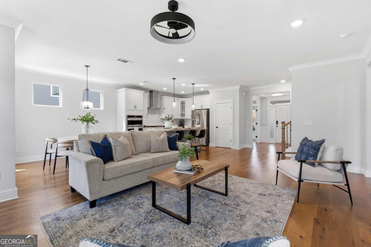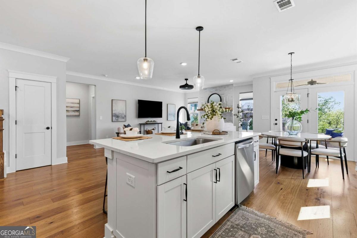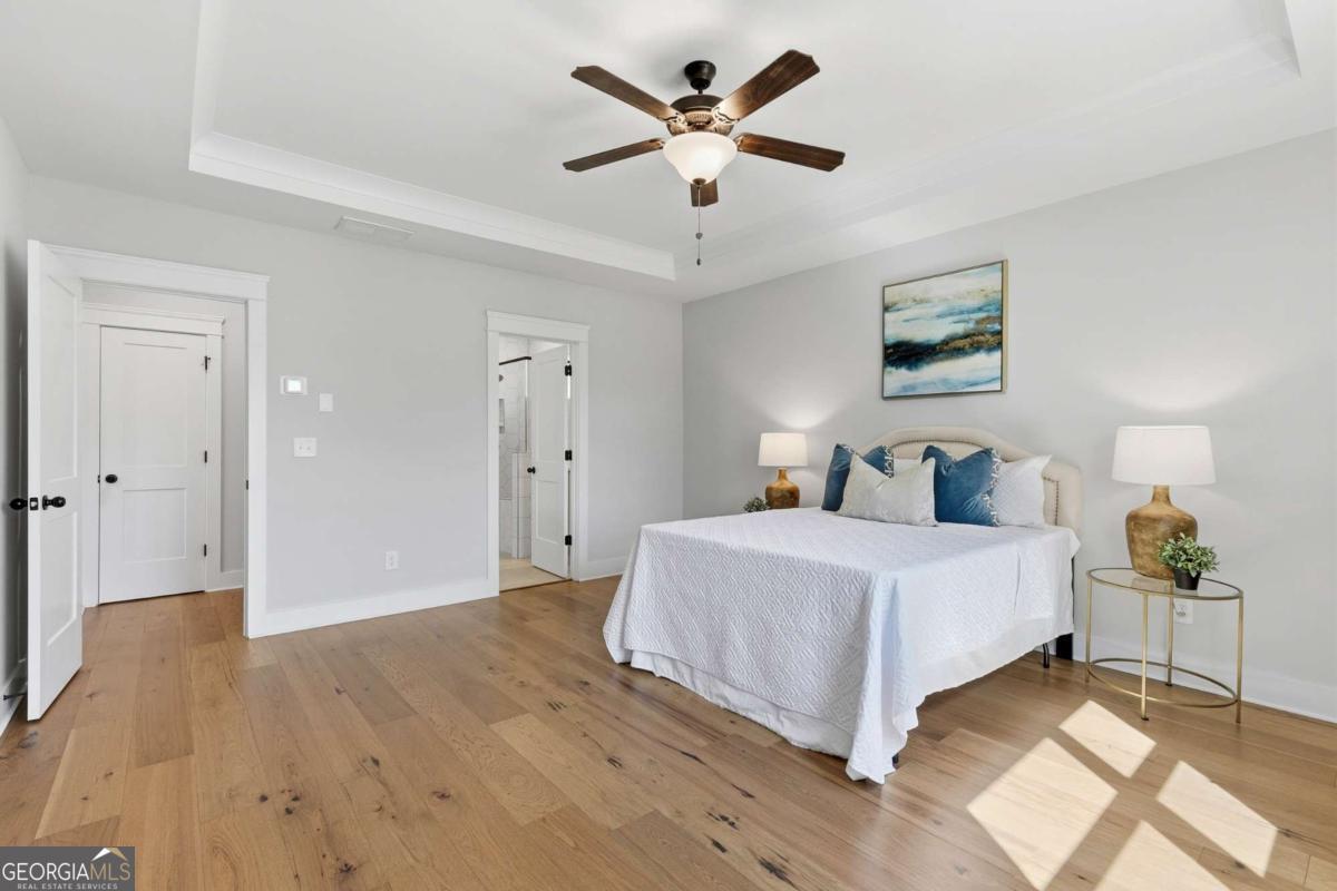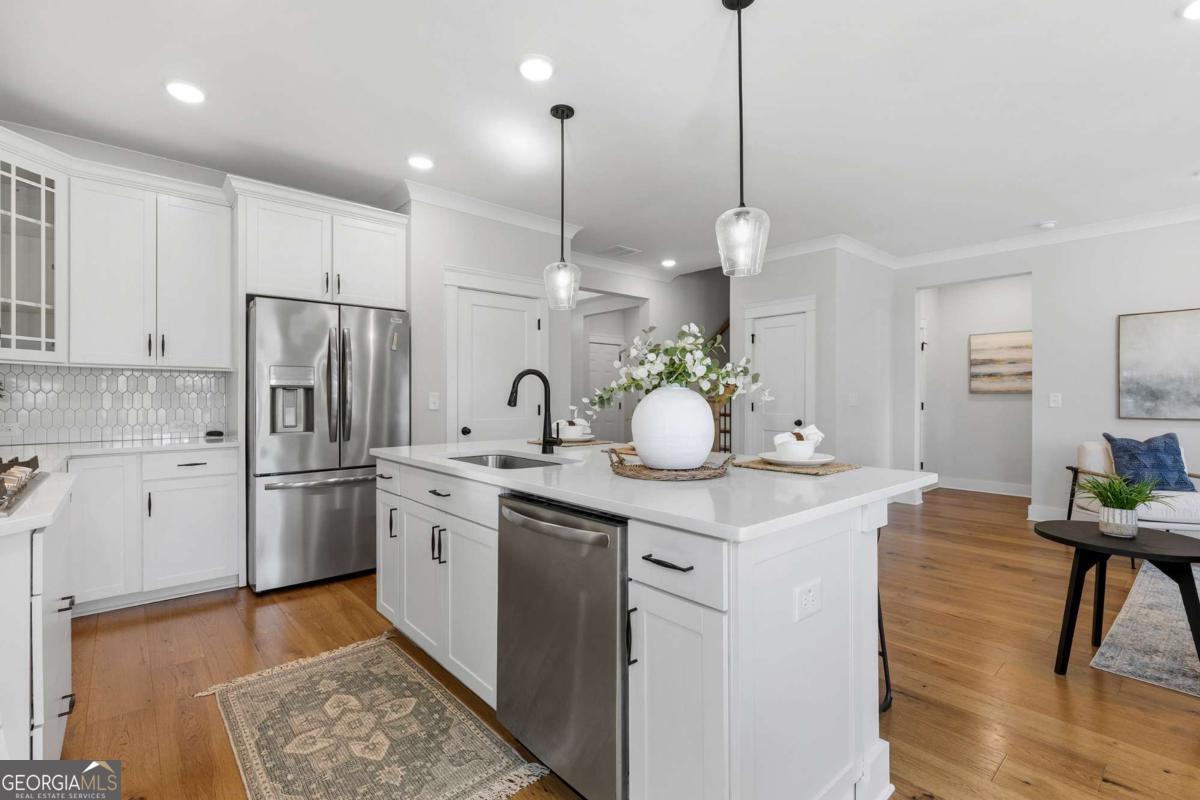 0PEN H0USE SUN. 4/19 FROM 2-4PM... Welcome to 203 Sunshower Ridge, a stunning newer construction home located in the desirable Sunrise Cove neighborhood of Great Sky, offering beautiful views of the reservoir and an exceptional blend of style, comfort, and convenience. Built in 2023, this thoughtfully designed home features nearly 2,800 square feet with 4 bedrooms and 3.5 bathrooms, including a highly sought-after primary suite on the main level. Step inside to an inviting open floor plan highlighted by rich pecan hardwood floors throughout the main living areas, a cozy fireplace in the family room, and an abundance of natural light. The spacious kitchen is the heart of the home, featuring Frigidaire Gallery stainless steel appliances, a gas cooktop, a large island ideal for gathering, and seamless flow into the dining area and living space. Just off the main living area, a dedicated office provides the perfect space for working from home or a quiet retreat. The dining area opens to an extended back patio overlooking the reservoir, creating a peaceful outdoor setting perfect for relaxing or entertaining. Enjoy additional outdoor living with a covered front porch and covered back patio. Upstairs, you will find generously sized secondary bedrooms, two full bathrooms, and a versatile media room offering additional living or entertainment space. New high-end carpet enhances the upper level, while updated light fixtures throughout the home add a modern touch. Additional features include a two-car garage, spacious bedrooms, and a well-designed layout that balances comfort and functionality. Ideally located just a short drive to I-575 and less than 10 minutes to Downtown Canton, The Mill on Etowah, and a variety of shopping and dining options, this home offers both convenience and lifestyle. Plus, enjoy the added benefit of being less than half a mile from the community amenities, making it easy to take advantage of everything Great Sky has to offer. Don't miss the opportunity to own this beautifully appointed home with scenic views in one of Canton's most sought-after communities.