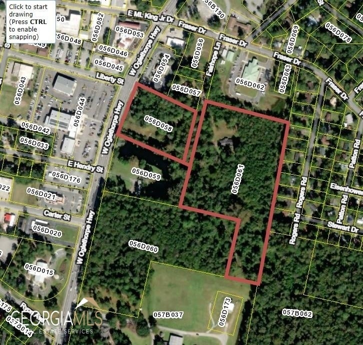 Assemblage of Liberty County Parcels 056D061 and 056D058 for approximately 14.27 +/- acres. This is in the Downtown Overlay District and would make a magnificent mixed-use project including retail, multifamily, and townhome. Access possibly from Oglethorpe Hwy with GDOT approval and signalized access via Fraser Dr. 6" sewer line is at the back of the property line.